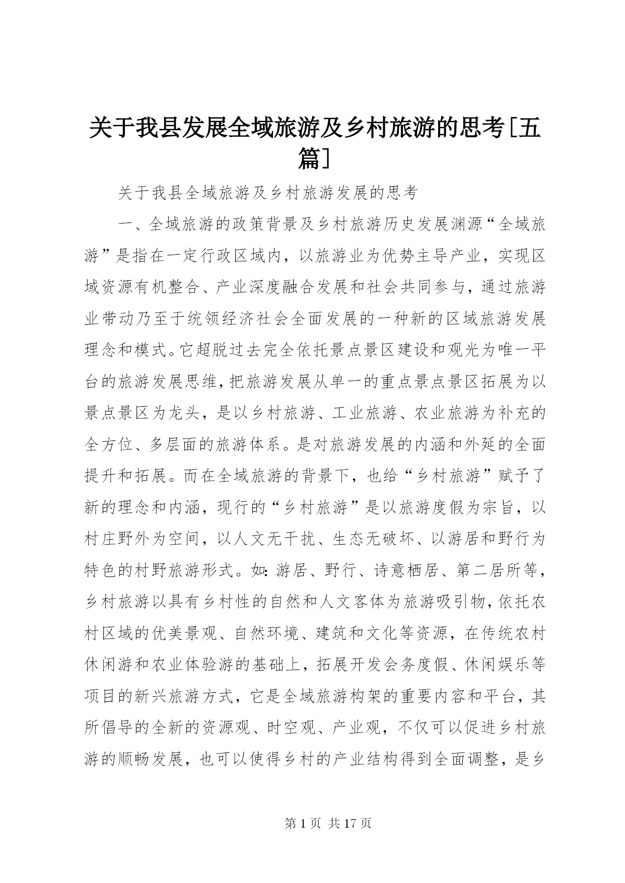 关于我县发展全域旅游及乡村旅游的思考[五篇].docx