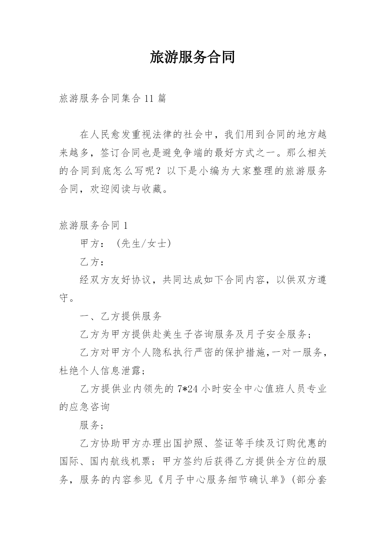 旅游服务合同旅游服务合同集合11篇在人民愈发重视法律的社会中,我们用到合同的地方越来越多,签订合同也是避免争端的最好方式之一。那么相关的合同到底怎么写呢?以下是小编为大家整理的旅游服务合同,欢迎阅读与收藏。旅游服务合同1甲方:(先生/女士)乙方:经双方友好协议,共同达成如下合同内容,以供双方遵守。一、乙方提供服务乙方为甲方提供赴美生子咨询服务及月子安全服务;乙方对甲方个人隐私执行严密的保护措施,一对一服务,杜绝个人信息泄露;乙方提供业内领先的7*24小时安全中心值班人员专业的应急咨询服务;乙方协助甲方办理