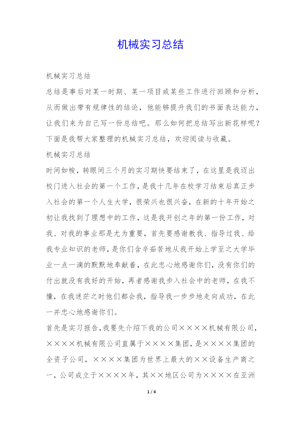 PAGE4/NUMPAGES4机械实习总结机械实习总结总结是事后对某一时期、某一项目或某些工作进行回顾和分析,从而做出带有规律性的结论,他能够提升我们的书面表达能力,让我们来为自己写一份总结吧。那么如何把总结写出新花样呢?下面是我帮大家整理的机械实习总结,欢迎阅读与收藏。机械实习总结时间如梭,转眼间三个月的实习期快要结束了,在这里是我迈出校门进入社会的第一个工作,是我十几年在校学习结束后真正步入社会的第一个人生大学,很荣兴也很兴奋,在新的十年开始之初让我找到了理想中的工作,这是我开创之年的第一