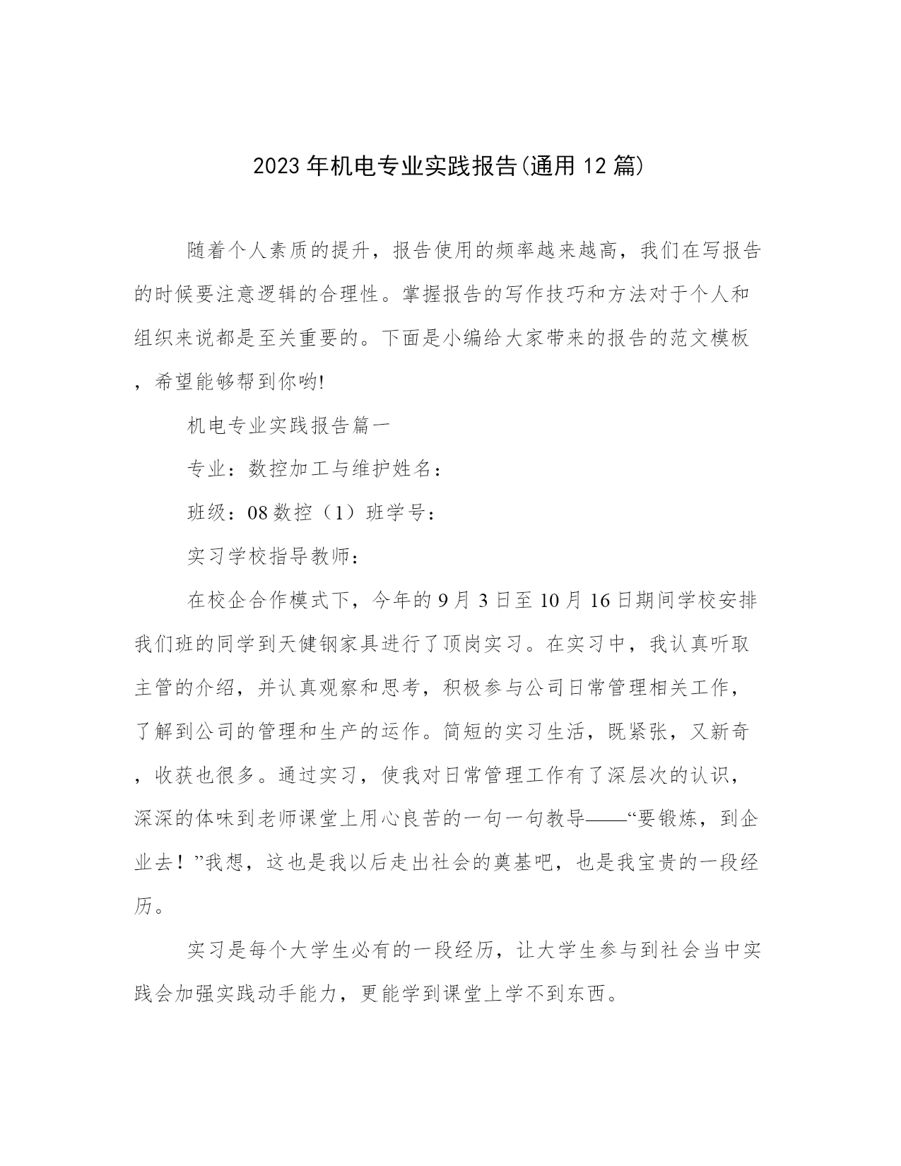 2023年机电专业实践报告(通用12篇).docx