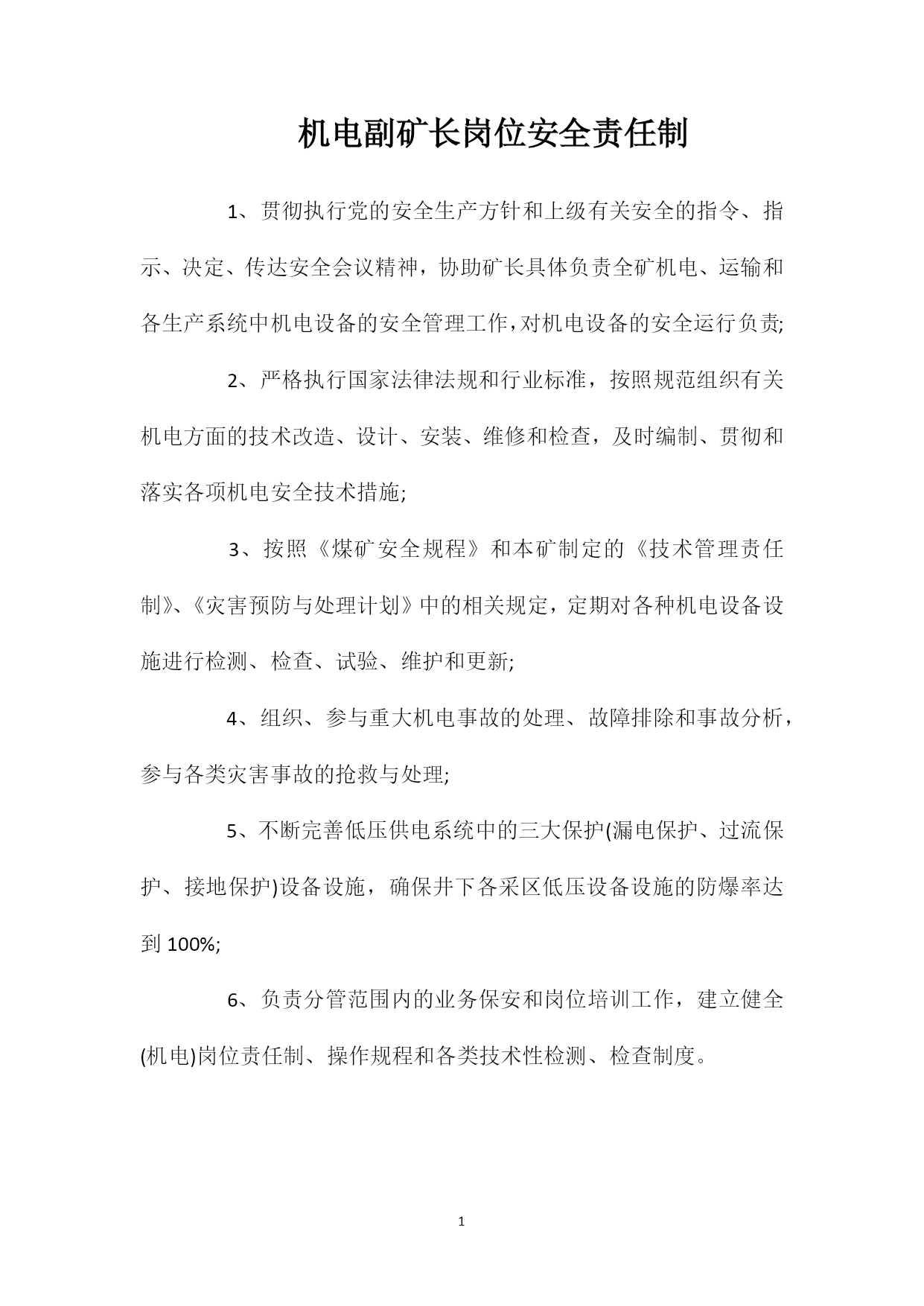 机电副矿长岗位责任制.doc