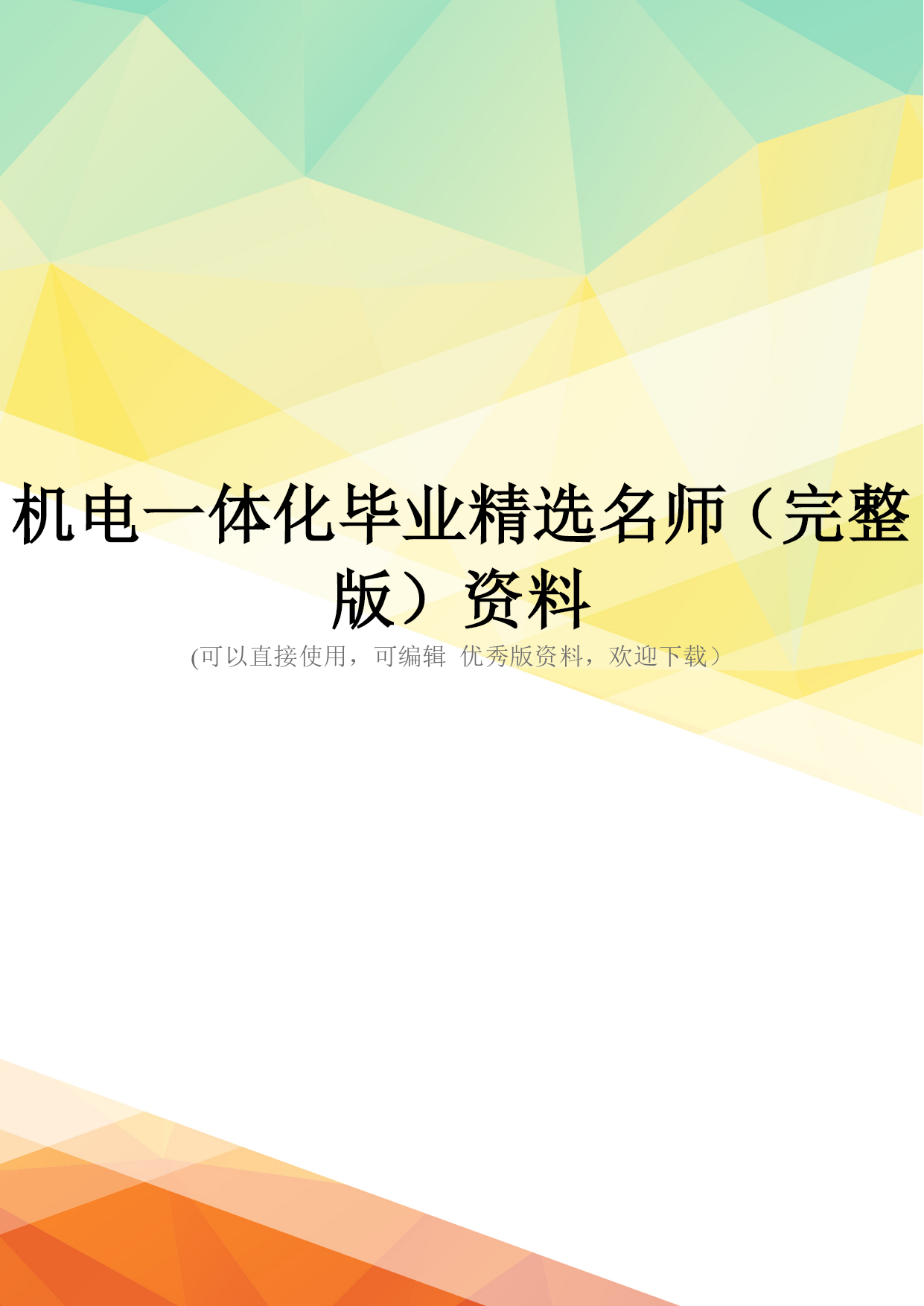 机电一体化毕业精选名师(完整版)资料(可以直接使用,可编辑优秀版资料,欢迎下载)武汉工程职业技术学院毕业论文毕业论文设计课题名称:机电一体化发展前景专业系机电一体化班级11级机电专业学生姓名张卜文指导老师李婷婷完成日期2021年3月25日目录摘要......................................................1关键词....................................................1正文...................