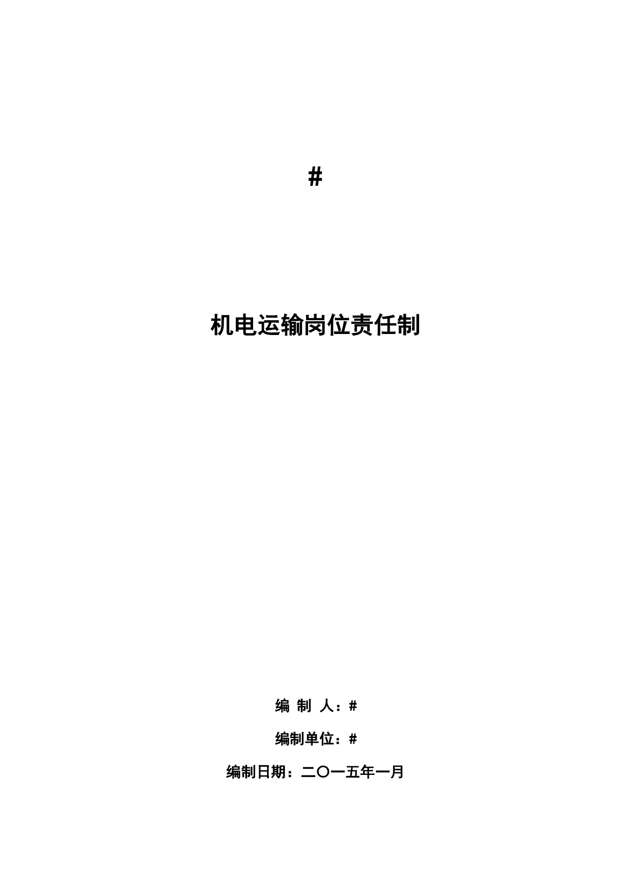 #机电运输岗位责任制编制人:#编制单位:#编制日期:二〇一五年一月目录TOC\o"1-3"\h\uHYPERLINK\l_Toc2234第一章机电运输管理人员岗位责任制PAGEREF_Toc2234-1-HYPERLINK\l_Toc29228第一节机电副矿长岗位责任制PAGEREF_Toc29228-1-HYPERLINK\l_Toc4168第二节机电副总岗位责任制PAGEREF_Toc4168-2-HYPERLINK\l_Toc7568第三节运输副总岗位责任