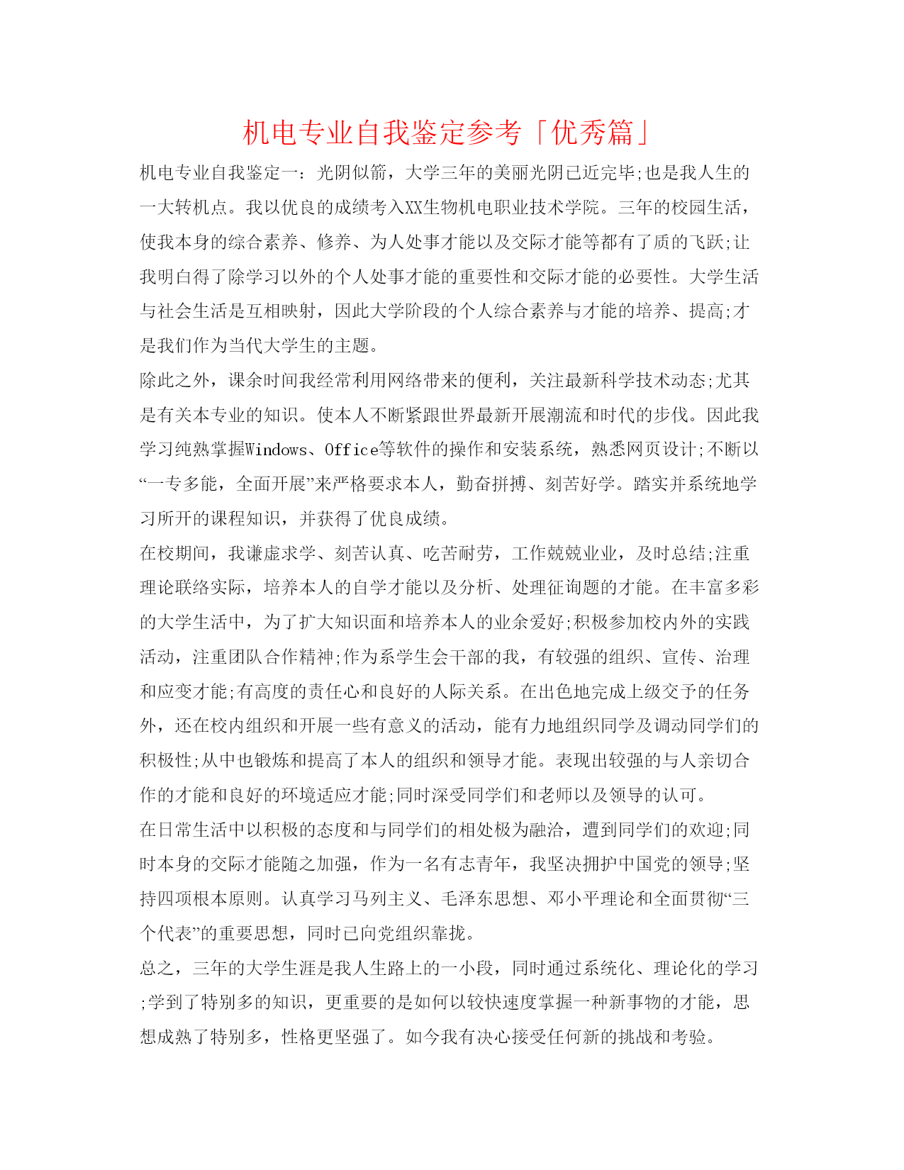 2022机电专业自我鉴定参考「优秀篇」.docx