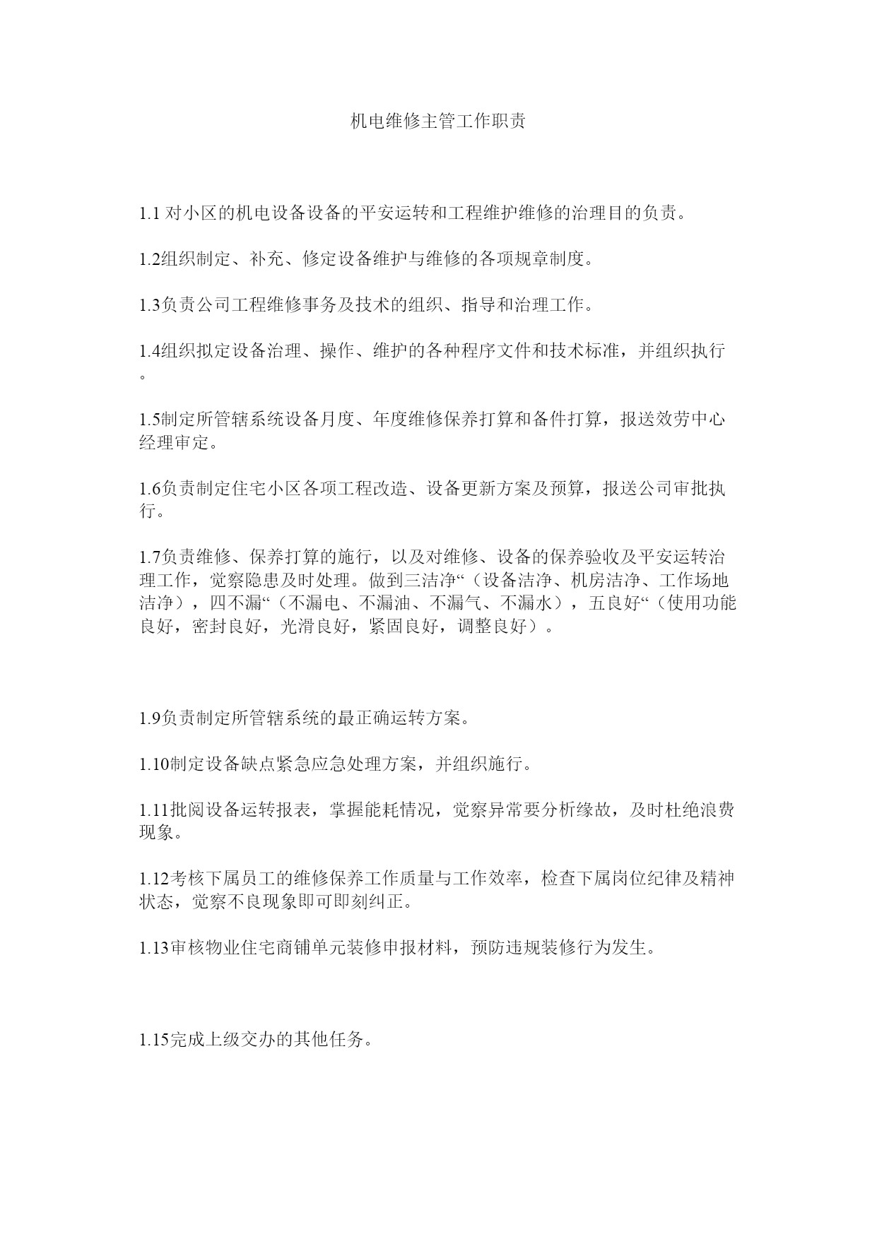 【精编】机电维修主管工作职责精选.docx