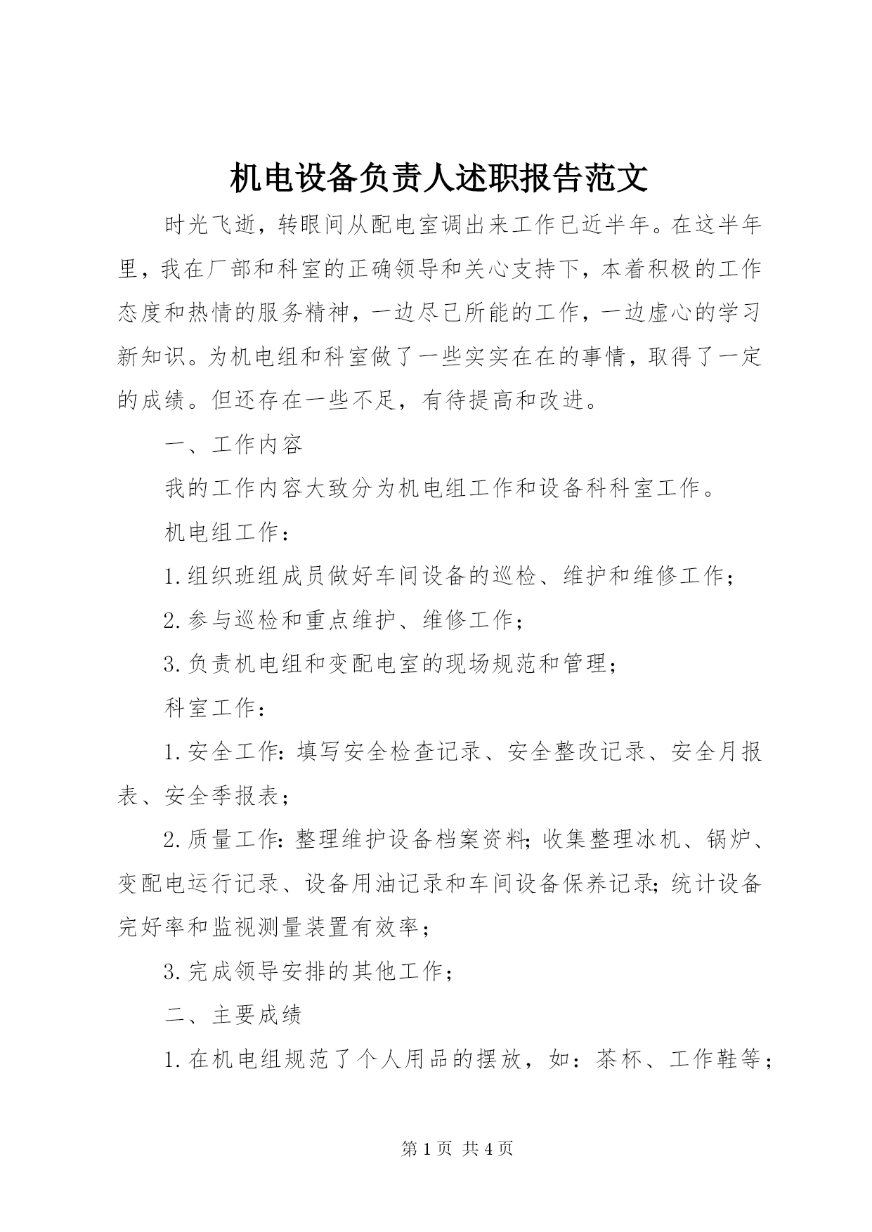 机电设备负责人述职报告范文.docx