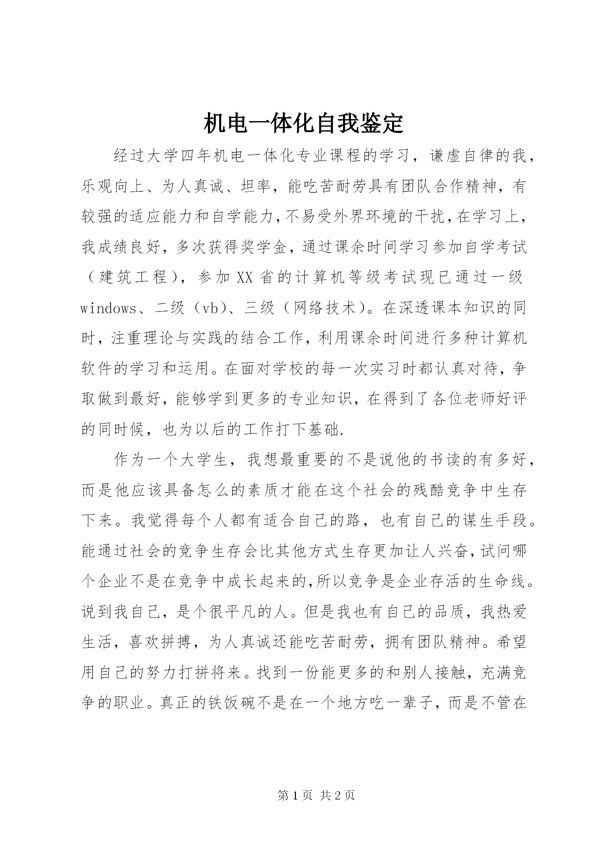 第PAGE\*Arabic\*MERGEFORMAT2页共NUMPAGES\*MERGEFORMAT2页机电一体化自我鉴定经过大学四年机电一体化专业课程的学习,谦虚自律的我,乐观向上、为人真诚、坦率,能吃苦耐劳具有团队合作精神,有较强的适应能力和自学能力,不易受外界环境的干扰,在学习上,我成绩良好,多次获得奖学金,通过课余时间学习参加自学考试(建筑工程),参加XX省的计算机等级考试现已通过一级windows、二级(vb)、三级(网络技术)。在深透课本知识的同时,注重理论与实践的结合工作,利用课