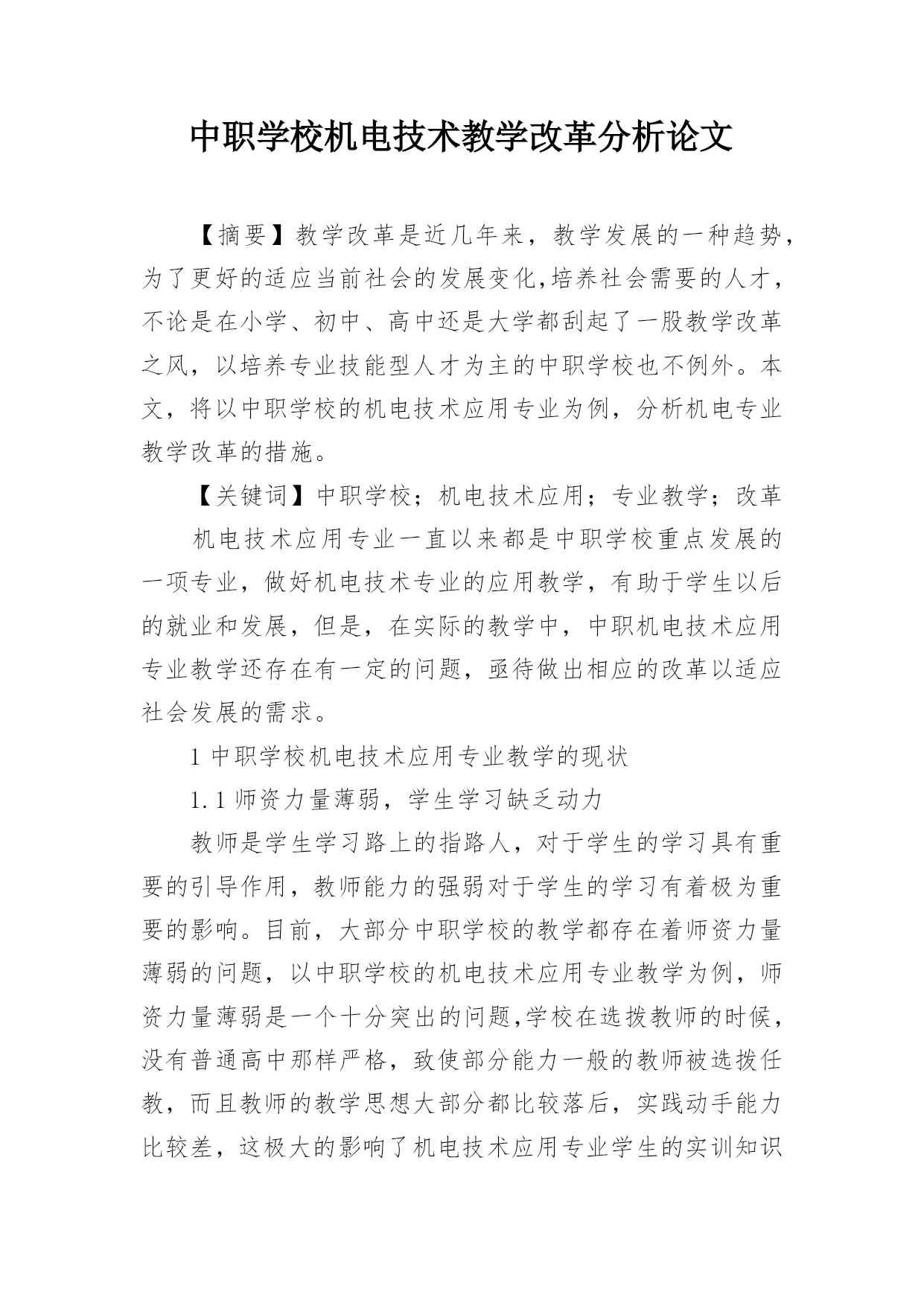 中职学校机电技术教学改革分析论文.docx