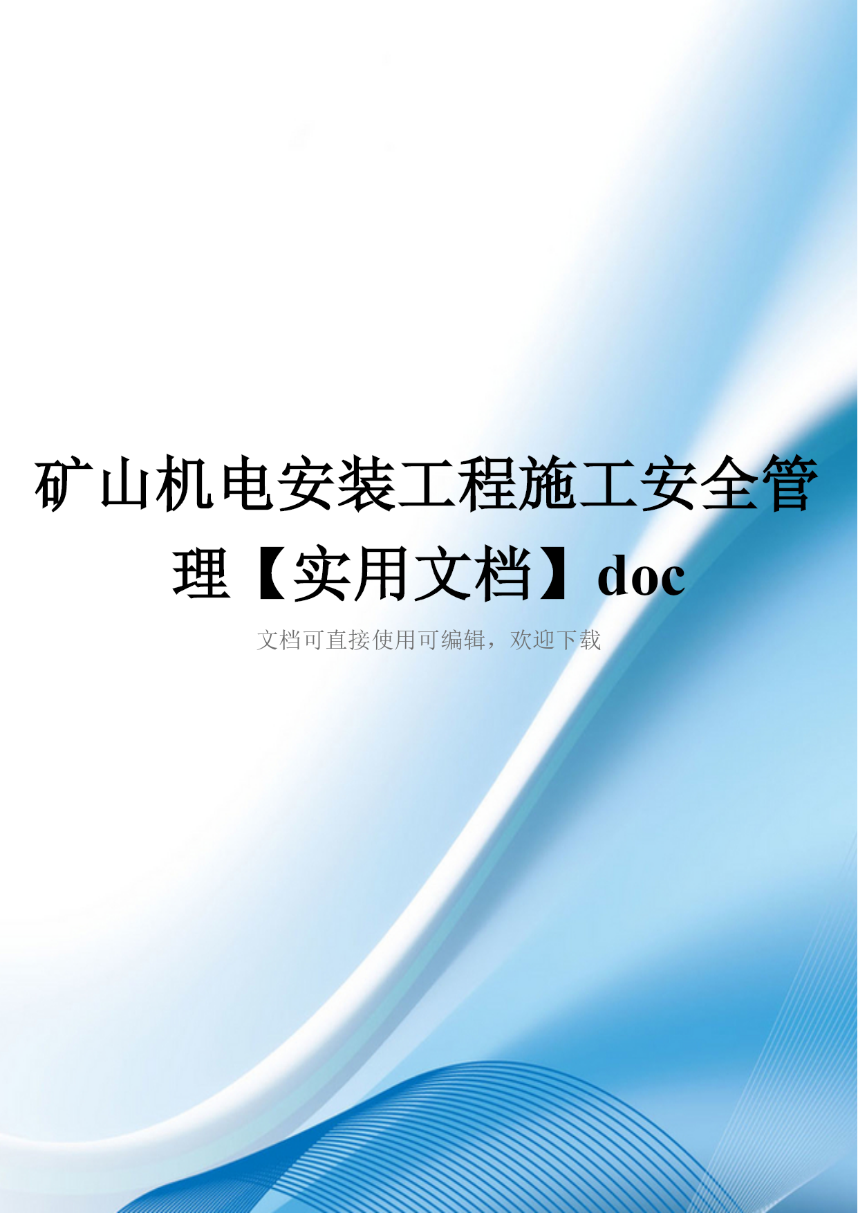 矿山机电安装工程施工安全管理【实用文档】doc文档可直接使用可编辑,欢迎下载矿山机电安装工程施工安全管理分析【摘要】矿山的发展,对于我国的其他行业的发展,具有非常重要的意义。矿山的机械化,使得机电设备越来越多。本文分析了当前的矿山机电安装施工中所存在的一系列问题,如施工人员素质层次不齐,对机电标准化工作的内容和重要性认识不足,矿井机电在施工过程中安全隐患比较多,并针对这些问题,提出了相应的改进措施和方案。【关键词】矿山机电施工;安全管理;对策0。引言对于煤矿的安全而言,管理在其中发挥着重要的作用。煤矿的安