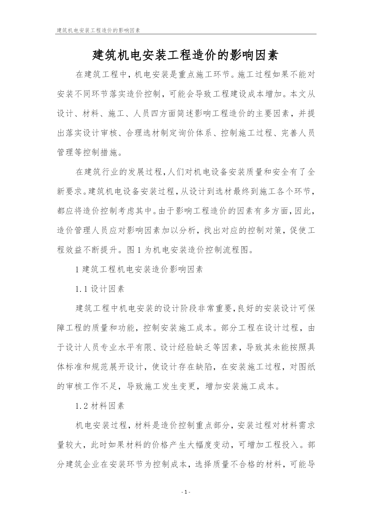 建筑机电安装工程造价的影响因素PAGE-1-PAGE-5-建筑机电安装工程造价的影响因素在建筑工程中,机电安装是重点施工环节。施工过程如果不能对安装不同环节落实造价控制,可能会导致工程建设成本增加。本文从设计、材料、施工、人员四方面简述影响工程造价的主要因素,并提出落实设计审核、合理选材制定询价体系、控制施工过程、完善人员管理等控制措施。在建筑行业的发展过程,人们对机电设备安装质量和安全有了全新要求。建筑机电设备安装过程,从设计到选材最终到施工各个环节,都应将造价控制考虑其中。由于影响工程造价