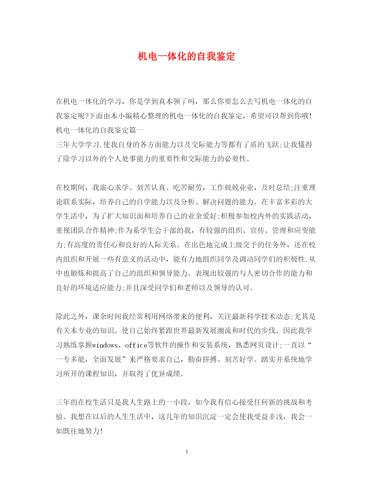 此资料由网络收集而来,如有侵权请告知上传者立即删除。资料共分享,我们负责传递知识。PAGEPAGE3机电一体化的自我鉴定在机电一体化的学习,你是学到真本领了吗,那么你要怎么去写机电一体化的自我鉴定呢?下面由本小编精心整理的机电一体化的自我鉴定,希望可以帮到你哦!机电一体化的自我鉴定篇一三年大学学习,使我自身的各方面能力以及交际能力等都有了质的飞跃;让我懂得了除学习以外的个人处事能力的重要性和交际能力的必要性。在校期间,我虚心求学、刻苦认真、吃苦耐劳,工作兢兢业业,及时总结;注重理论联系实际,培