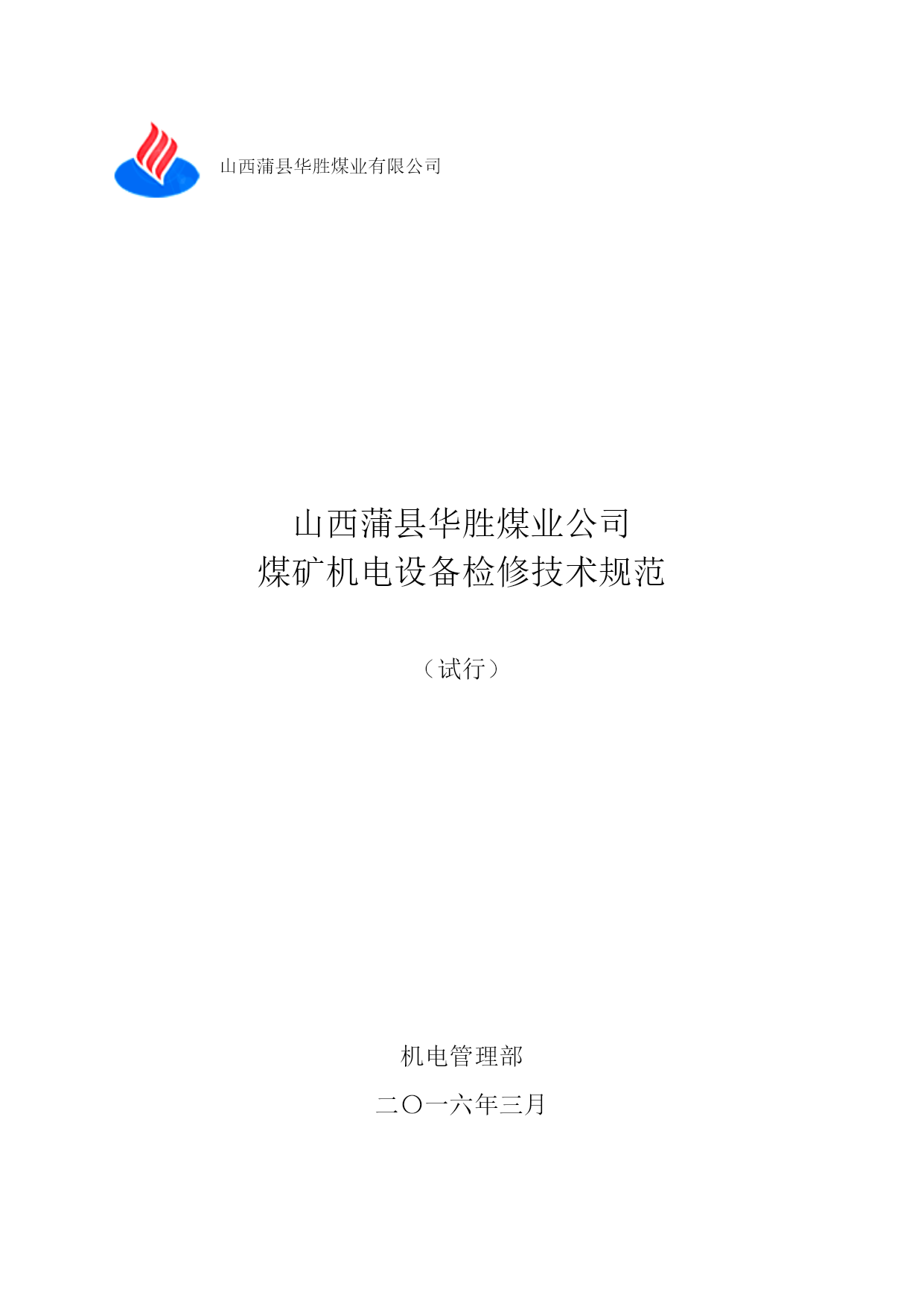 山西蒲县华胜煤业有限公司山西蒲县华胜煤业公司煤矿机电设备检修技术规范(试行)机电管理部二〇一六年三月目录TOC\o"1-3"\h\z\uHYPERLINK\l"_Toc446170264"第一章总则PAGEREF_Toc446170264\h1HYPERLINK\l"_Toc446170265"第二章机械通用部分PAGEREF_Toc446170265\h2HYPERLINK\l"_Toc446170266"一、紧固件PAGEREF_Toc446170266\h2