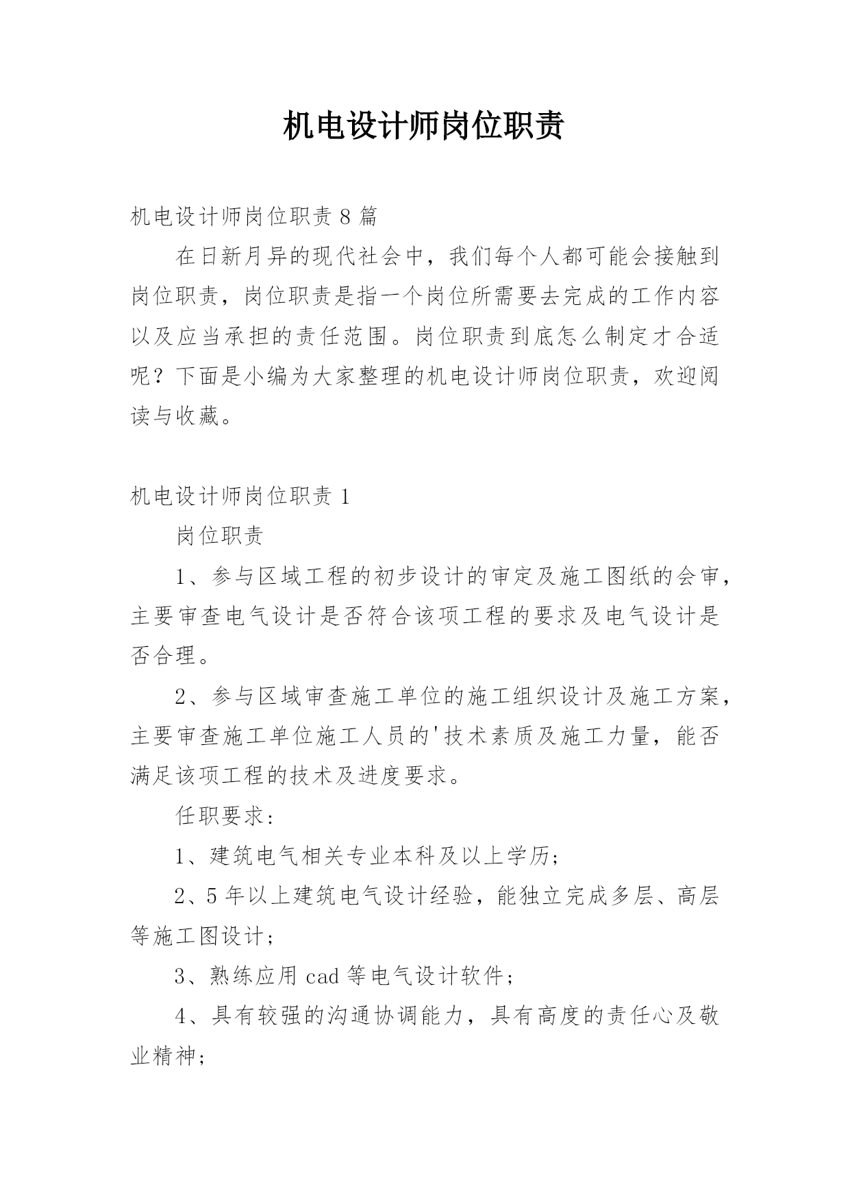 机电设计师岗位职责编辑精选.docx