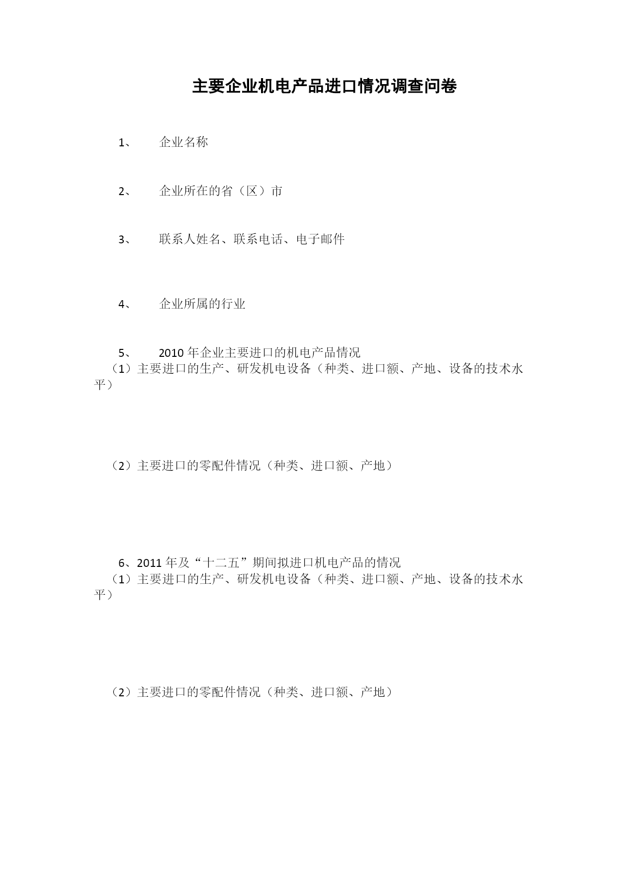 主要企业机电产品进口情况调查问卷.doc