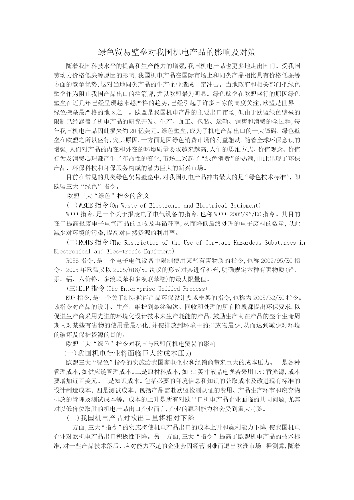 绿色贸易壁垒对我国机电产品的影响及对策.doc