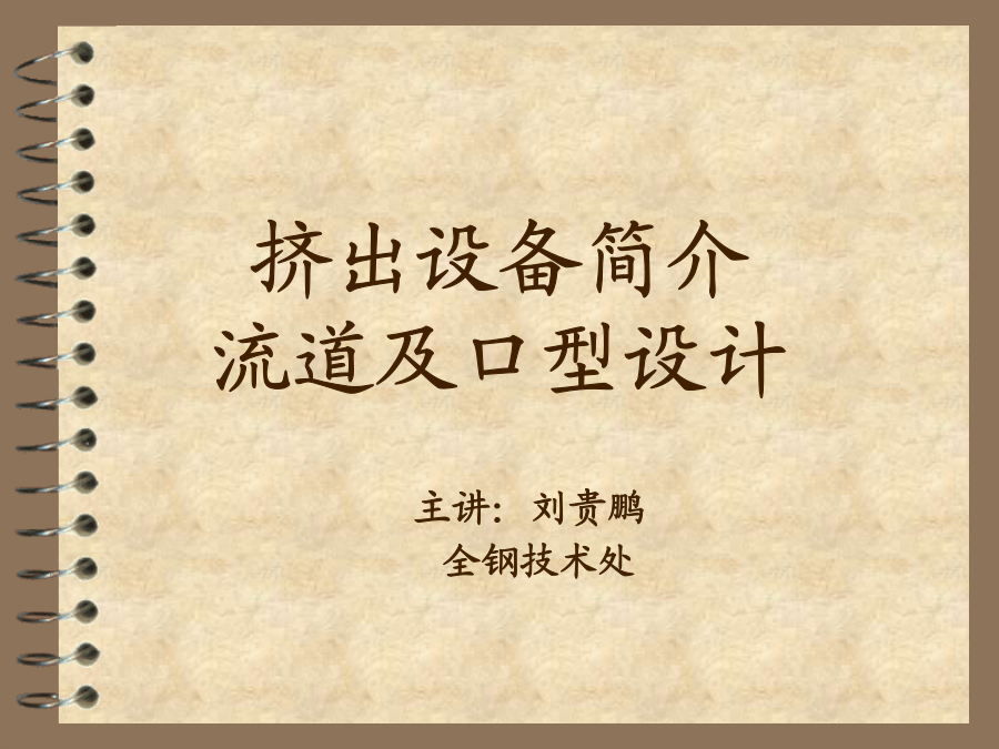 挤出设备简介流道及口型设计一.挤出设备:1.挤出设备的分类、组成、技术特征及应用范围。2.挤出机的发展趋势。3.销钉型冷喂料挤出机。4.挤出工艺原理。二.挤出机流道及口型设计:1.机头流道的设计。2.预口型及口型板的设计.一挤出设备:C.按喂料方式分:冷喂料热喂料1.3挤出机的主要技术特征:概念解释b.压缩比:c.压出机的生产能力:C1.实际测定法:我们着重按喂料方式对挤出机进行介绍:d.长径比大,可根据生产需要对挤出机各段温度进行设定,排胶温度容易控制。B.热喂料挤出机.C.销钉型冷喂料挤出机:1.5应