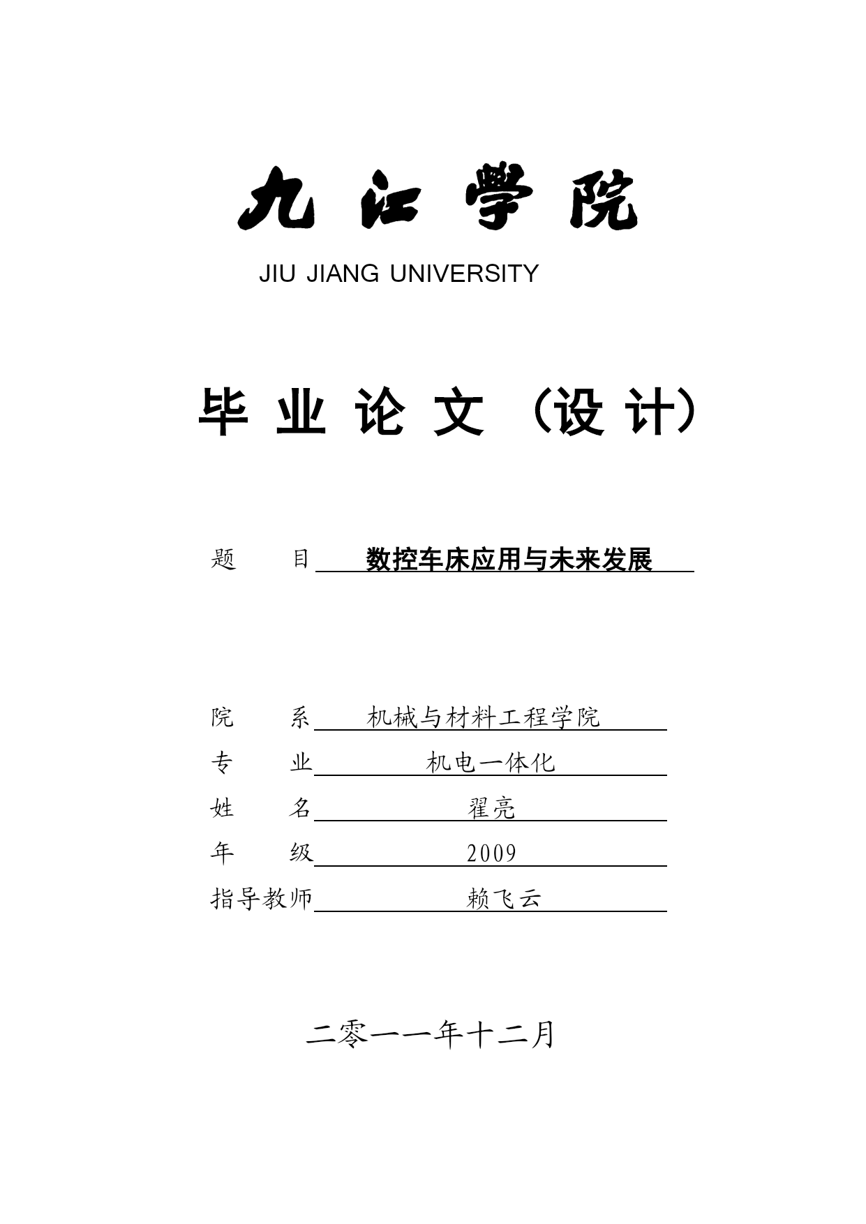 Vol.xNo.yDecember.11JIUJIANGUNIVERSITY毕业论文(设计)题目数控车床应用与未来发展院系机械与材料工程学院专业机电一体化姓名翟亮年级2009指导教师赖飞云二零一一年十二月目录TOC\o"1-3"\h\z\uHYPERLINK\l"_Toc312077321"【摘要】PAGEREF_Toc312077321\h1HYPERLINK\l"_Toc312077322"【关键词】PAGEREF_Toc312077322\h1HYPERLINK\l"_