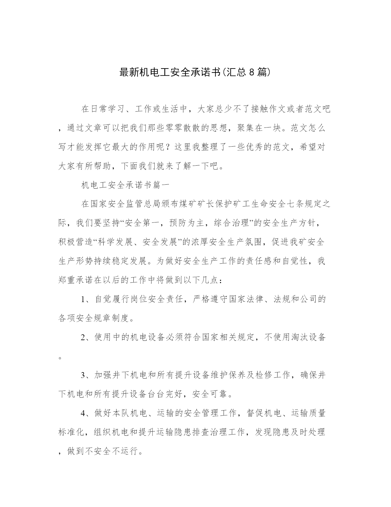 最新机电工安全承诺书(汇总8篇).docx