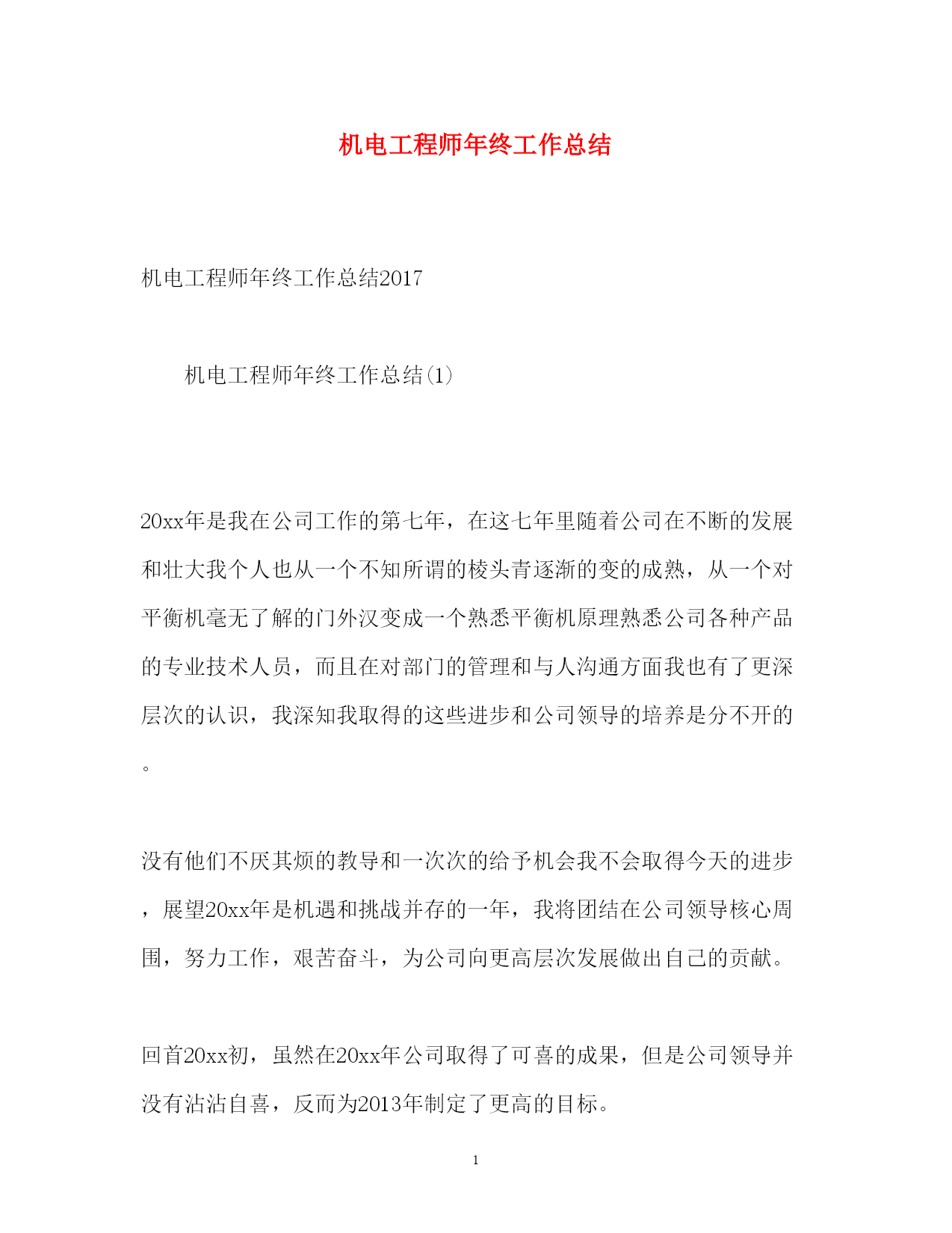 此资料由网络收集而来,如有侵权请告知上传者立即删除。资料共分享,我们负责传递知识。PAGEPAGE19机电工程师年终工作总结机电工程师年终工作总结2017机电工程师年终工作总结(1)20xx年是我在公司工作的第七年,在这七年里随着公司在不断的发展和壮大我个人也从一个不知所谓的棱头青逐渐的变的成熟,从一个对平衡机毫无了解的门外汉变成一个熟悉平衡机原理熟悉公司各种产品的专业技术人员,而且在对部门的管理和与人沟通方面我也有了更深层次的认识,我深知我取得的这些进步和公司领导的培养是分不开的。没有他们不