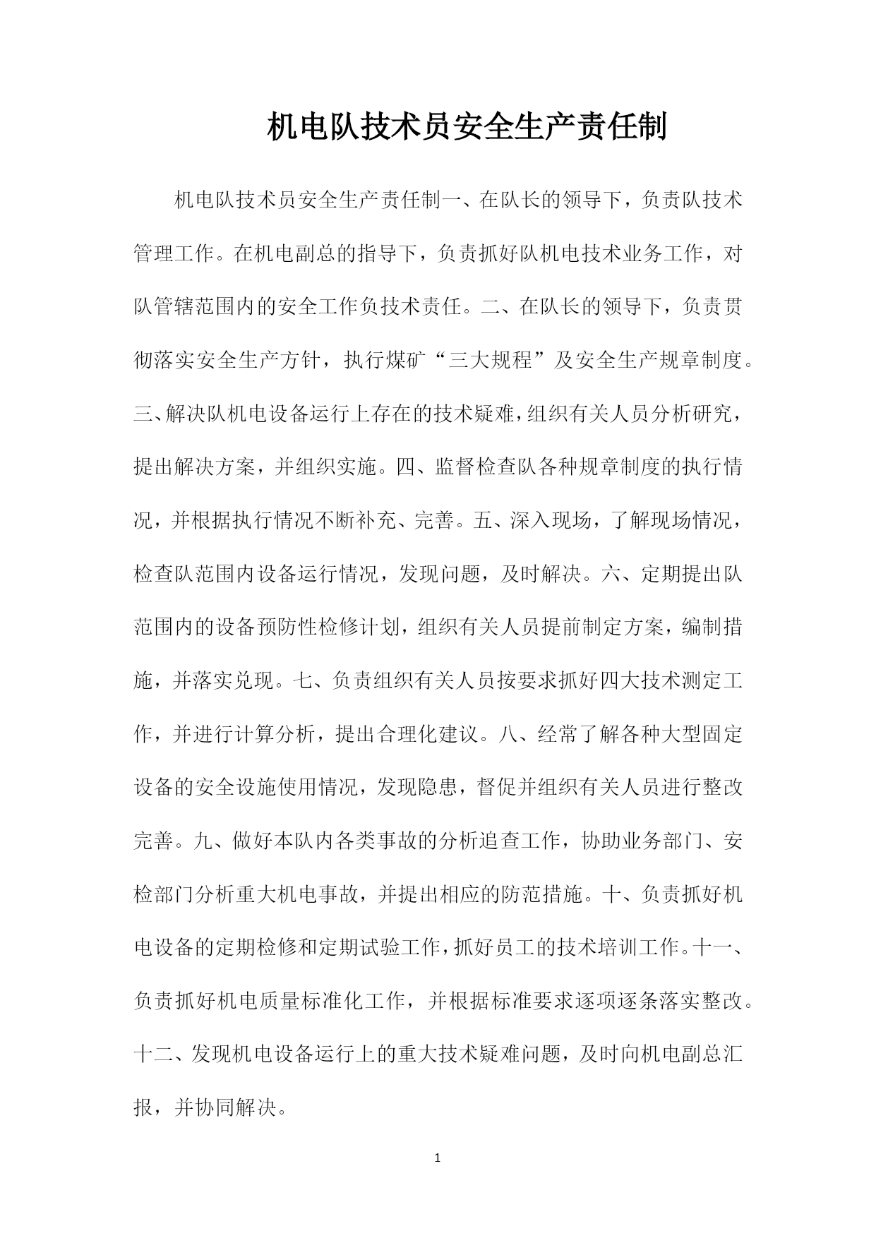 机电队技术员安全生产责任制.doc