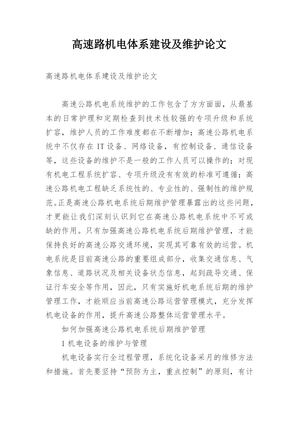 高速路机电体系建设及维护论文.docx