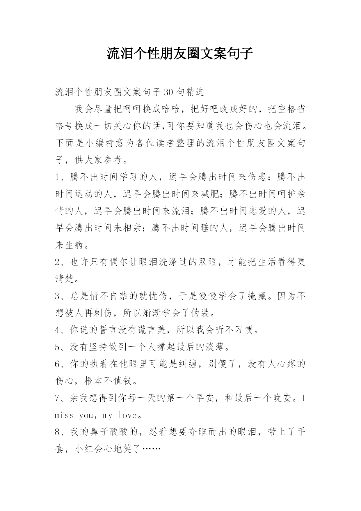 流泪个性朋友圈文案句子.docx