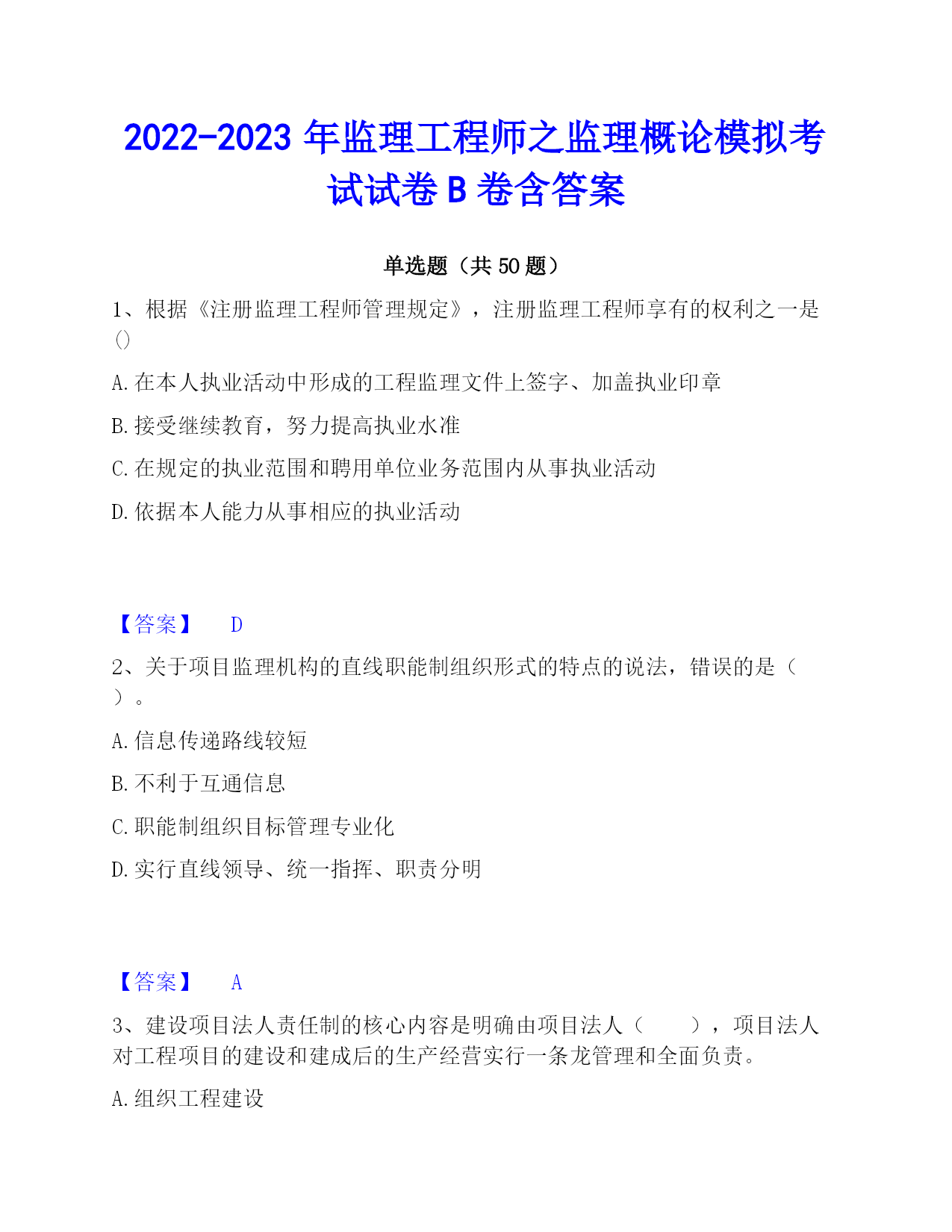 2022-2023年监理工程师之监理概论模拟考试试卷B卷含答案.docx