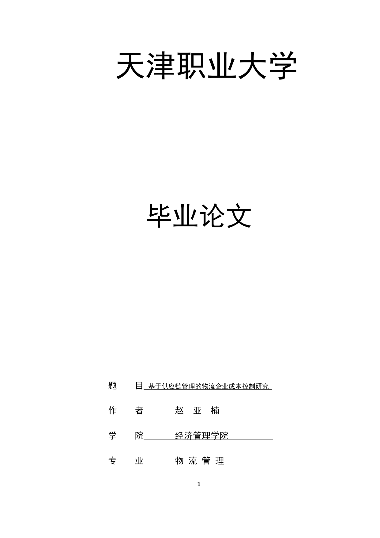 PAGE\*MERGEFORMAT20天津职业大学毕业论文题目基于供应链管理的物流企业成本控制研究作者赵亚楠学院经济管理学院专业物流管理学号2016201041指导教师陈斌年月日目录TOC\o"1-3"\h\z\uHYPERLINK\l"_Toc6405204"第一章绪论PAGEREF_Toc6405204\h5HYPERLINK\l"_Toc6405205"1.1研究背景PAGEREF_Toc6405205\h5HYPERLINK\l"_Toc6405206"1.2