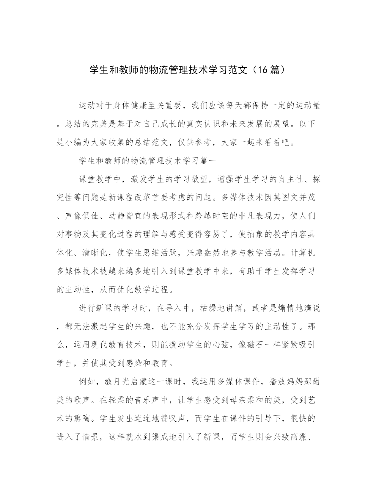 学生和教师的物流管理技术学习范文(16篇).docx