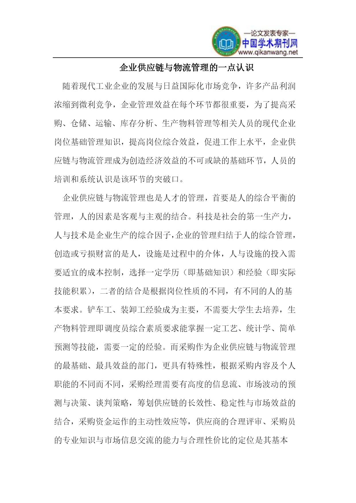 企业供应链与物流管理的一点认识随着现代工业企业的发展与日益国际化市场竞争,许多产品利润浓缩到微利竞争,企业管理效益在每个环节都很重要,为了提高采购、仓储、运输、库存分析、生产物料管理等相关人员的现代企业岗位基础管理知识,提高岗位综合效益,促进工作上水平,企业供应链与物流管理成为创造经济效益的不可或缺的基础环节,人员的培训和系统认识是该环节的突破口。企业供应链与物流管理也是人才的管理,首要是人的综合平衡的管理,人的因素是客观与主观的结合。科技是社会的第一生产力,人与技术是企业生产的综合因子,企业的管理归结于