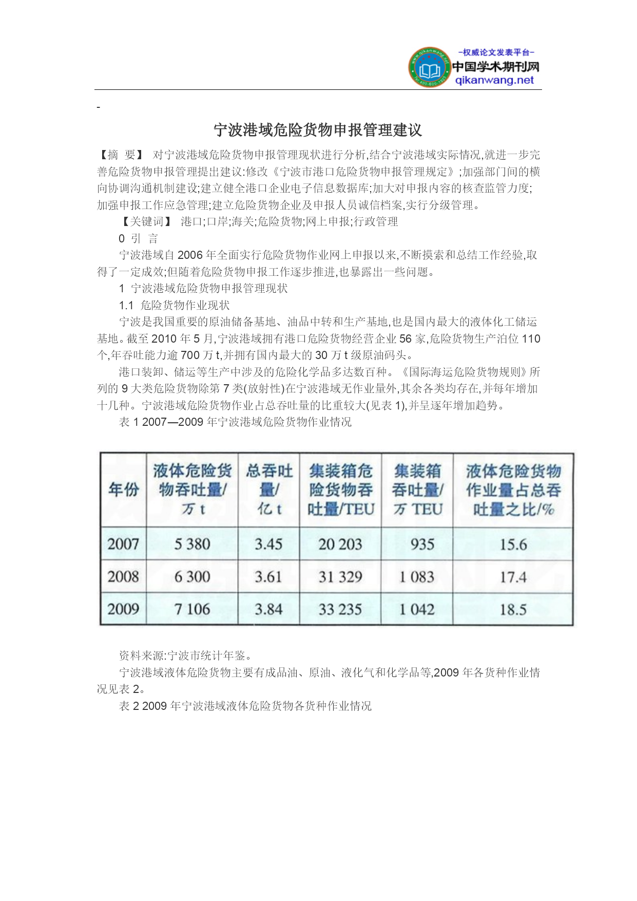 港口物流管理论文_-宁波港域危险货物申报管理建议.doc