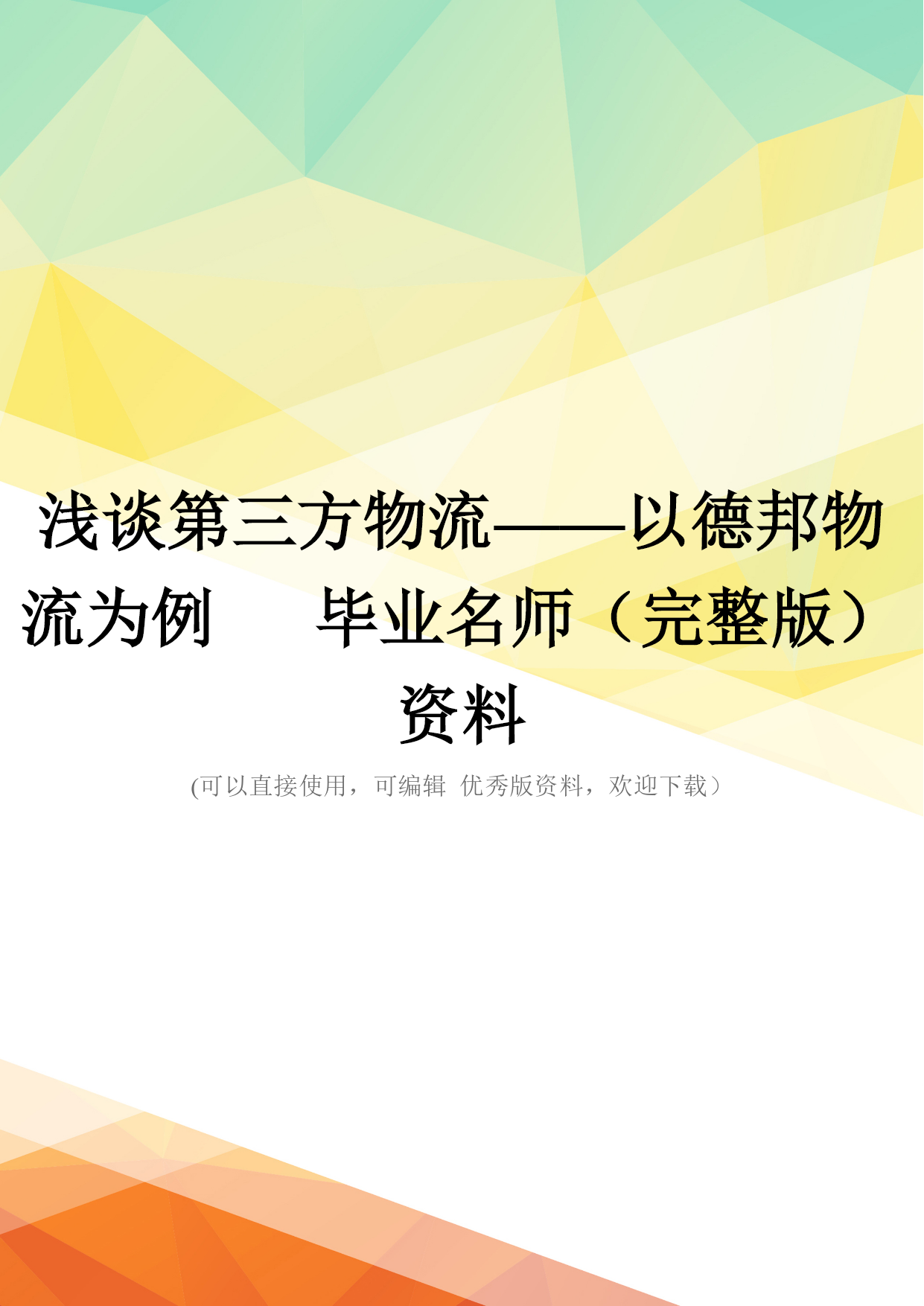 浅谈第三方物流——以德邦物流为例---毕业名师.doc