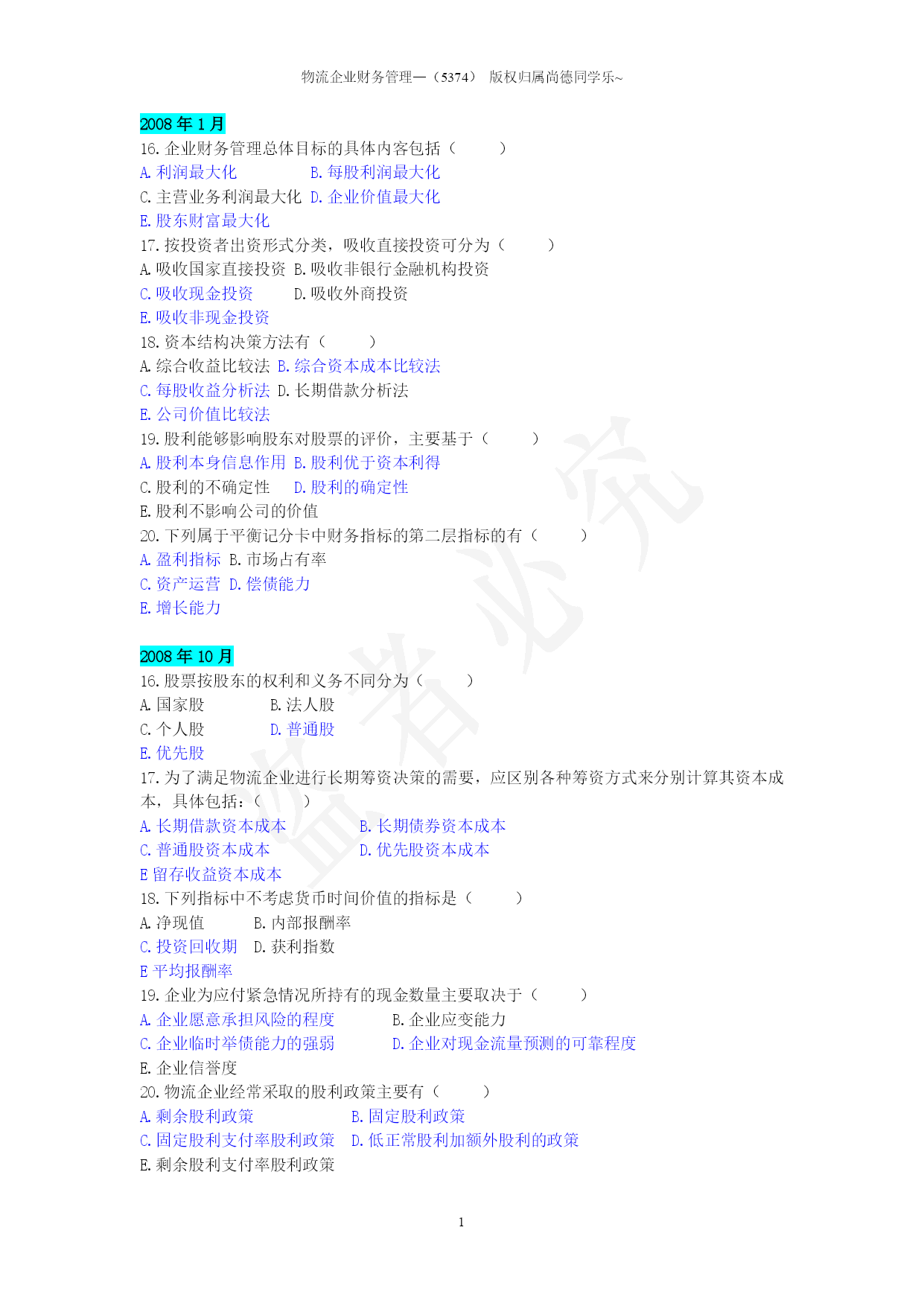 物流企业财务管理(05374)2008年、2009年、2010年、2011.doc