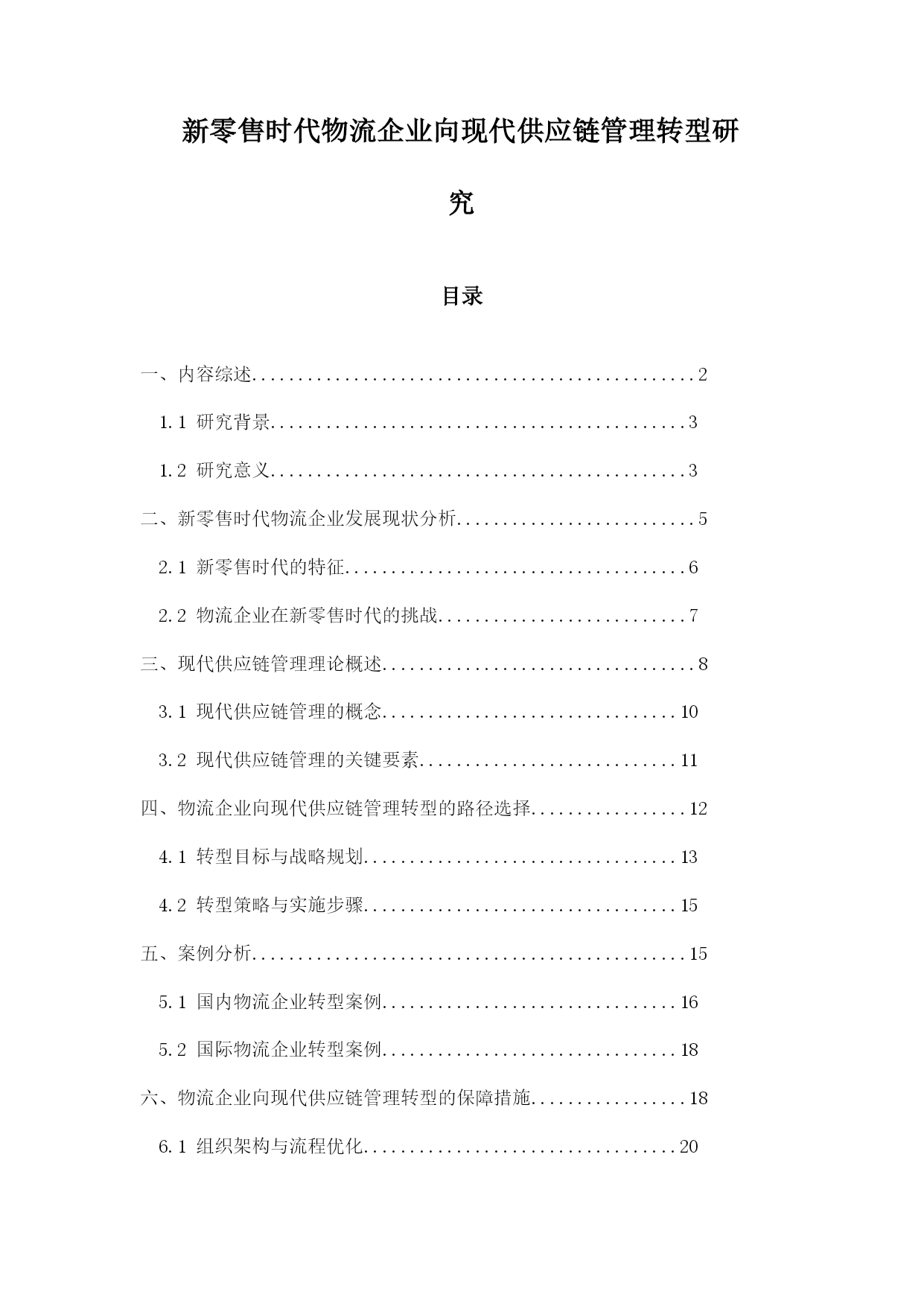新零售时代物流企业向现代供应链管理转型研究目录一、内容综述................................................21.1研究背景.............................................31.2研究意义.............................................3二、新零售时代物流企业发展现状分析..........................52.1新零售时代的特征................
