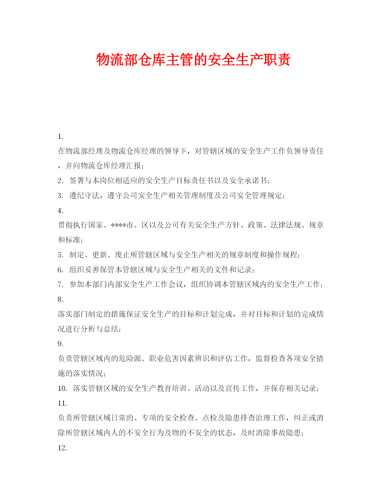 【精编】《安全管理制度》之物流部仓库主管的安全生产职责.docx