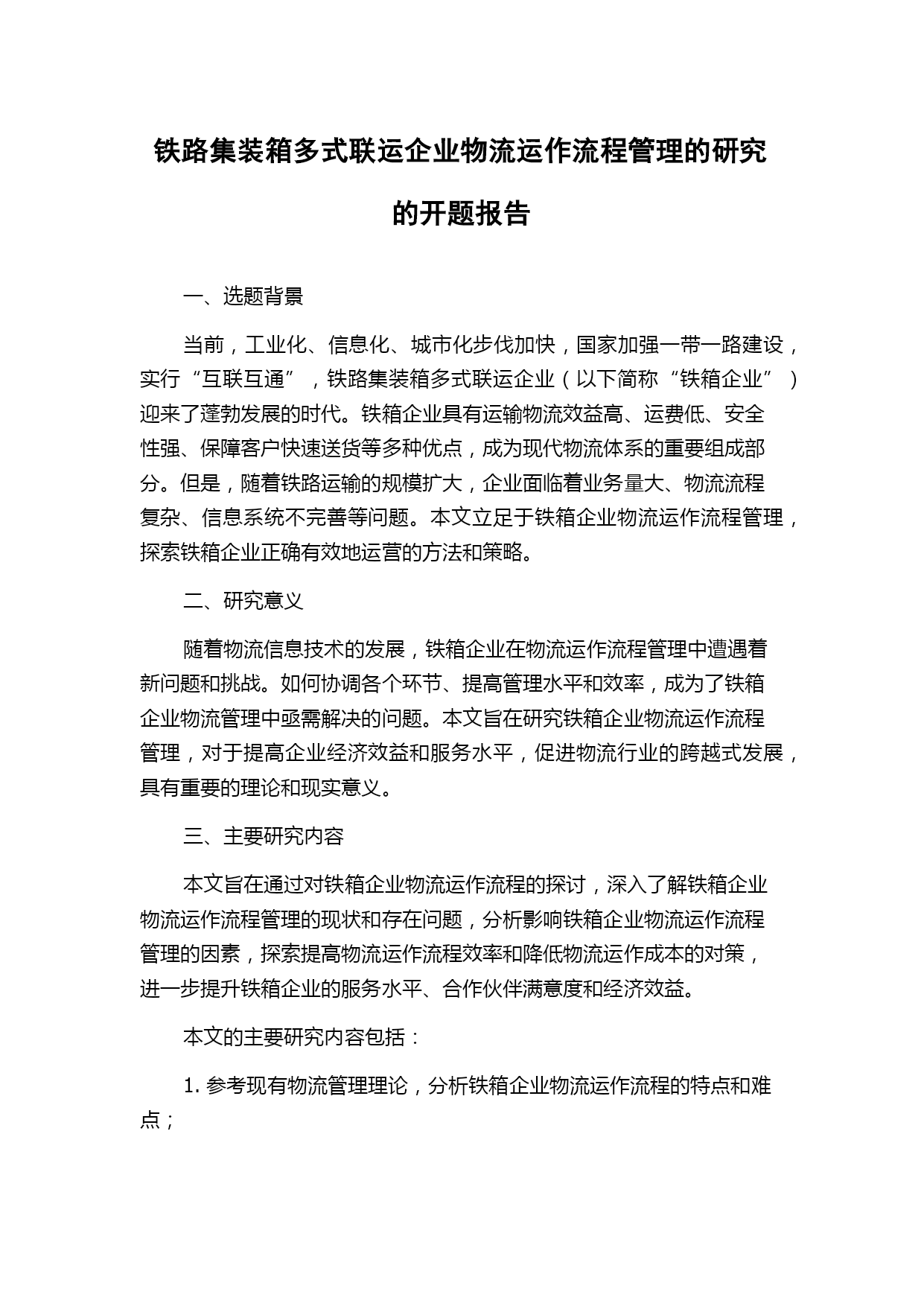铁路集装箱多式联运企业物流运作流程管理的研究的开题报告.docx