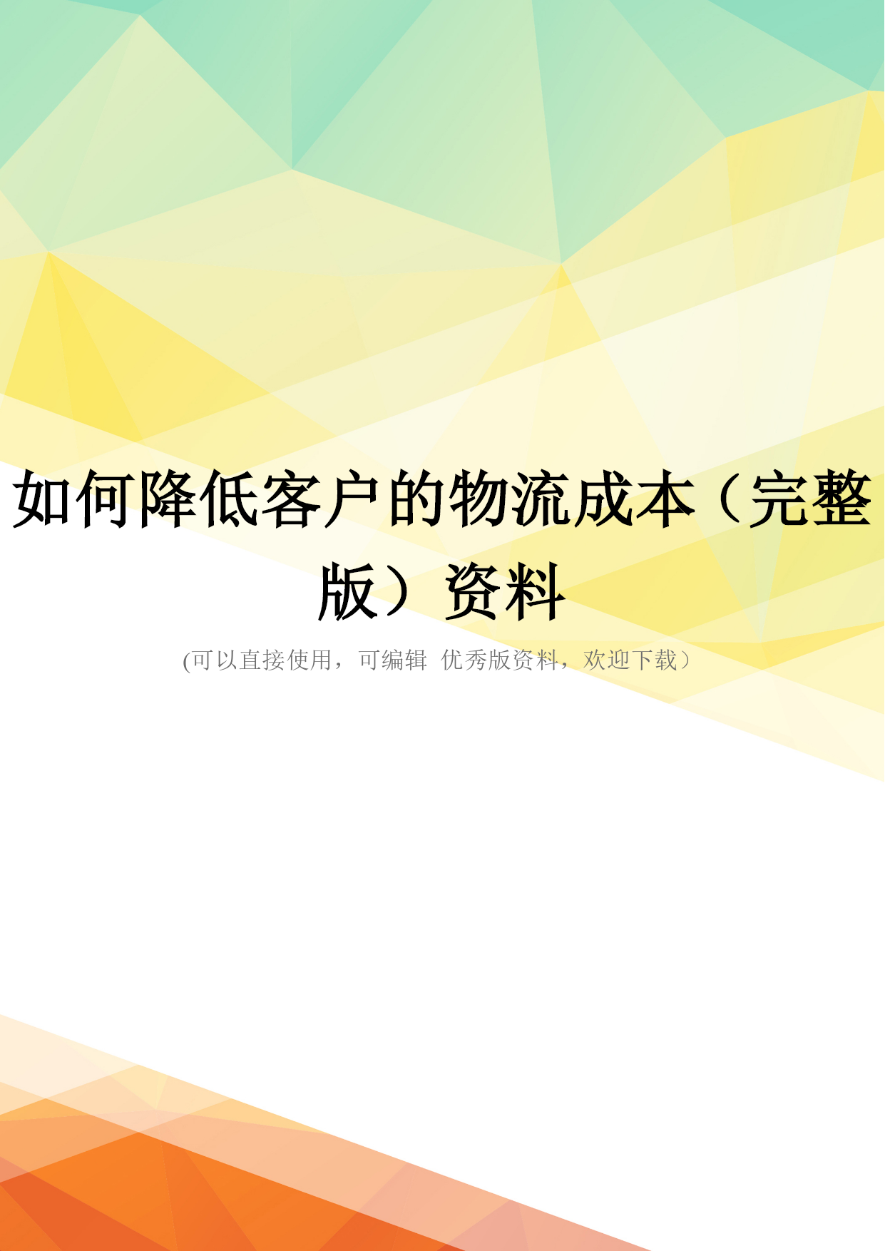 如何降低客户的物流成本.doc