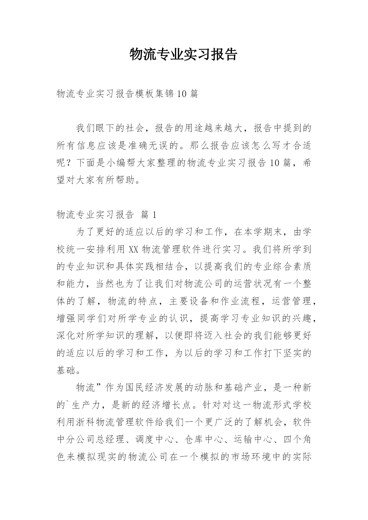 物流专业实习报告物流专业实习报告模板集锦10篇我们眼下的社会,报告的用途越来越大,报告中提到的所有信息应该是准确无误的。那么报告应该怎么写才合适呢?下面是小编帮大家整理的物流专业实习报告10篇,希望对大家有所帮助。物流专业实习报告篇1为了更好的适应以后的学习和工作,在本学期末,由学校统一安排利用XX物流管理软件进行实习。我们将所学到的专业知识和具体实践相结合,以提高我们的专业综合素质和能力,当然也为了让我们对物流公司的运营状况有一个整体的了解,物流的特点,主要设备和作业流程,运营管理,增强同学们对所学专业