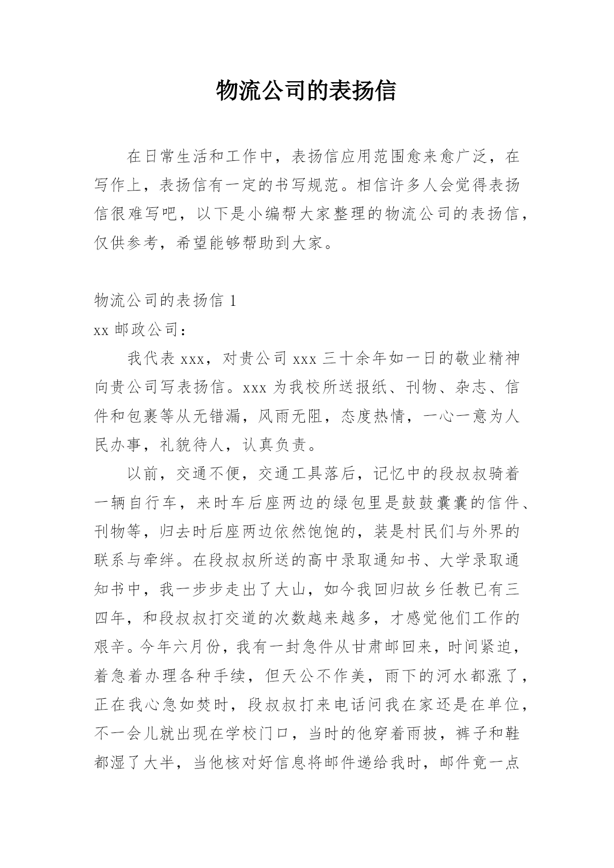 物流公司的表扬信在日常生活和工作中,表扬信应用范围愈来愈广泛,在写作上,表扬信有一定的书写规范。相信许多人会觉得表扬信很难写吧,以下是小编帮大家整理的物流公司的表扬信,仅供参考,希望能够帮助到大家。物流公司的表扬信1xx邮政公司:我代表xxx,对贵公司xxx三十余年如一日的敬业精神向贵公司写表扬信。xxx为我校所送报纸、刊物、杂志、信件和包裹等从无错漏,风雨无阻,态度热情,一心一意为人民办事,礼貌待人,认真负责。以前,交通不便,交通工具落后,记忆中的段叔叔骑着一辆自行车,来时车后座两边的绿包里是鼓鼓囊囊的