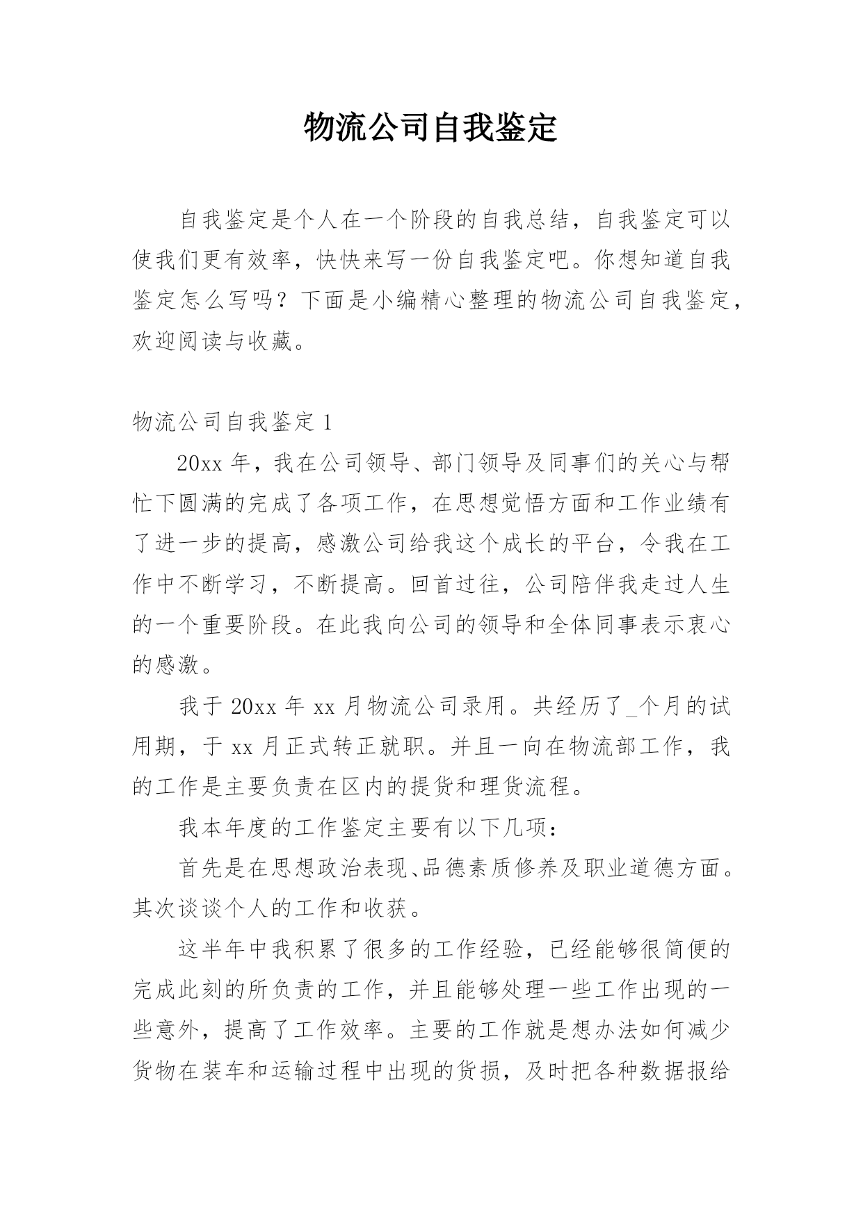 物流公司自我鉴定自我鉴定是个人在一个阶段的自我总结,自我鉴定可以使我们更有效率,快快来写一份自我鉴定吧。你想知道自我鉴定怎么写吗?下面是小编精心整理的物流公司自我鉴定,欢迎阅读与收藏。物流公司自我鉴定120xx年,我在公司领导、部门领导及同事们的关心与帮忙下圆满的完成了各项工作,在思想觉悟方面和工作业绩有了进一步的提高,感激公司给我这个成长的平台,令我在工作中不断学习,不断提高。回首过往,公司陪伴我走过人生的一个重要阶段。在此我向公司的领导和全体同事表示衷心的感激。我于20xx年xx月物流公司录用。共经历