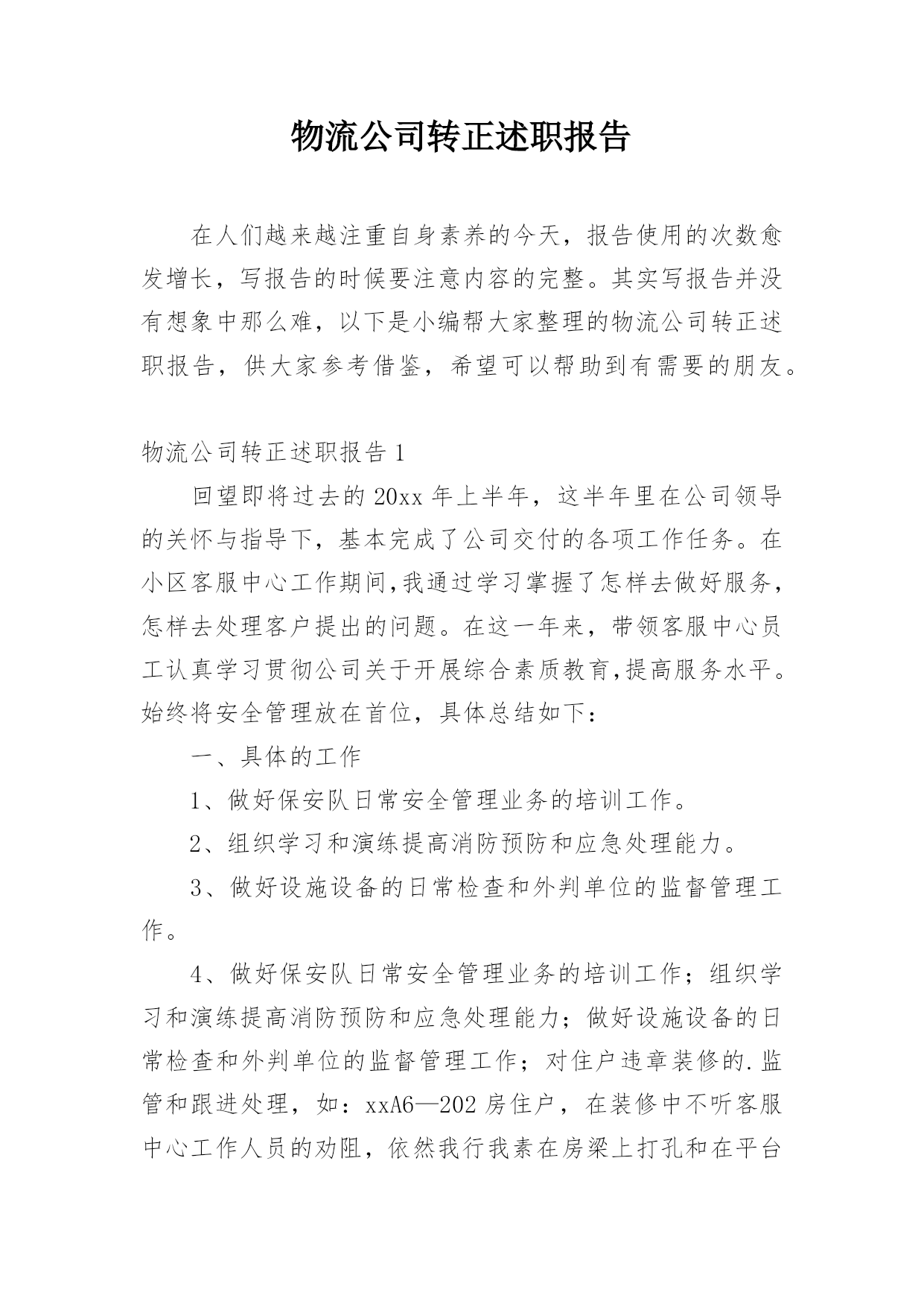 物流公司转正述职报告在人们越来越注重自身素养的今天,报告使用的次数愈发增长,写报告的时候要注意内容的完整。其实写报告并没有想象中那么难,以下是小编帮大家整理的物流公司转正述职报告,供大家参考借鉴,希望可以帮助到有需要的朋友。物流公司转正述职报告1回望即将过去的20xx年上半年,这半年里在公司领导的关怀与指导下,基本完成了公司交付的各项工作任务。在小区客服中心工作期间,我通过学习掌握了怎样去做好服务,怎样去处理客户提出的问题。在这一年来,带领客服中心员工认真学习贯彻公司关于开展综合素质教育,提高服务水平。始