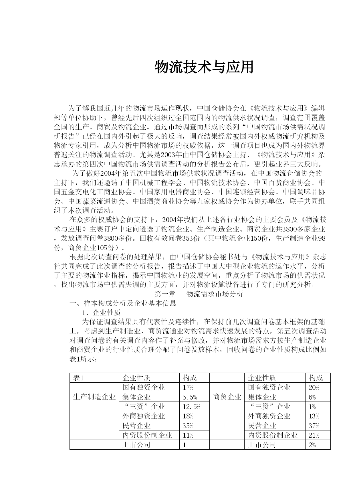 物流技术与应用为了解我国近几年的物流市场运作现状,中国仓储协会在《物流技术与应用》编辑部等单位协助下,曾经先后四次组织过全国范围内的物流供求状况调查,调查范围覆盖全国的生产、商贸及物流企业。通过市场调查而形成的系列“中国物流市场供需状况调研报告”已经在国内外引起了极大的反响,调查结果经常被国内外权威物流研究机构及物流专家引用,成为分析中国物流市场的权威依据,这一调查项目也成为国内外物流界普遍关注的物流调查活动。尤其是2003年由中国仓储协会主持、《物流技术与应用》杂志承办的第四次中国物流市场供需调查活动的