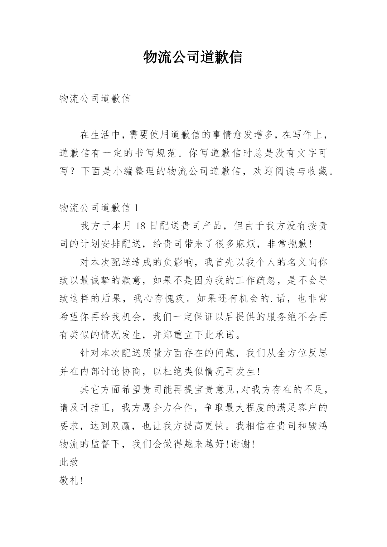 物流公司道歉信.docx