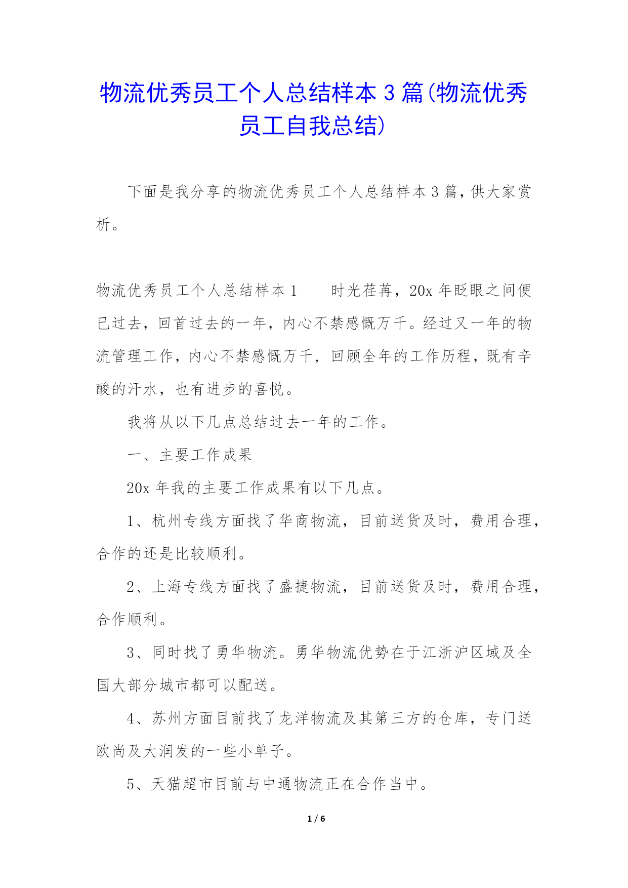 物流优秀员工个人总结样本3篇(物流优秀员工自我总结).docx