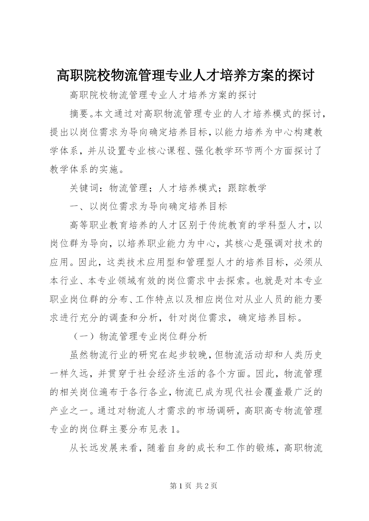 最新精编之高职院校物流管理专业人才培养方案的探讨.docx