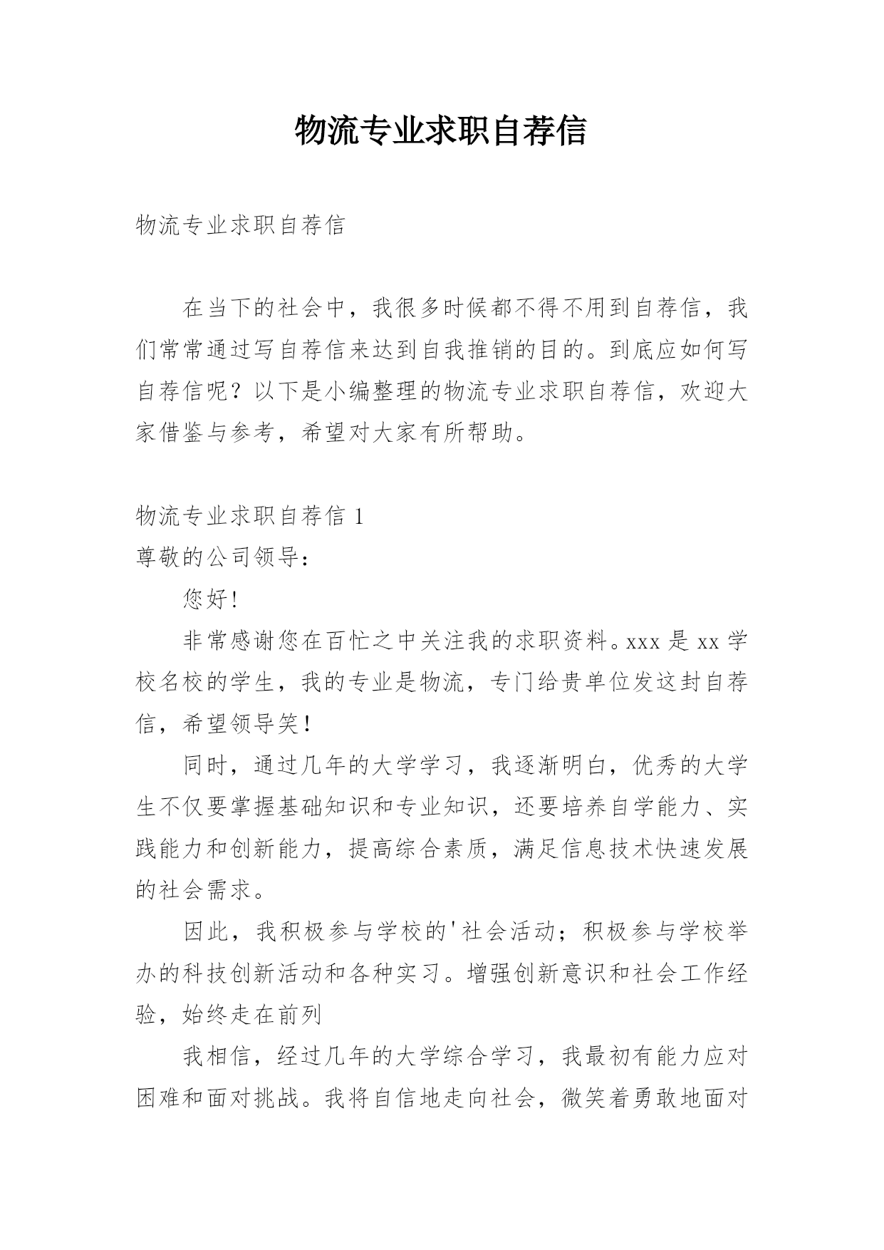 物流专业求职自荐信物流专业求职自荐信在当下的社会中,我很多时候都不得不用到自荐信,我们常常通过写自荐信来达到自我推销的目的。到底应如何写自荐信呢?以下是小编整理的物流专业求职自荐信,欢迎大家借鉴与参考,希望对大家有所帮助。物流专业求职自荐信1尊敬的公司领导:您好!非常感谢您在百忙之中关注我的求职资料。xxx是xx学校名校的学生,我的专业是物流,专门给贵单位发这封自荐信,希望领导笑!同时,通过几年的大学学习,我逐渐明白,优秀的大学生不仅要掌握基础知识和专业知识,还要培养自学能力、实践能力和创新能力,提高综合