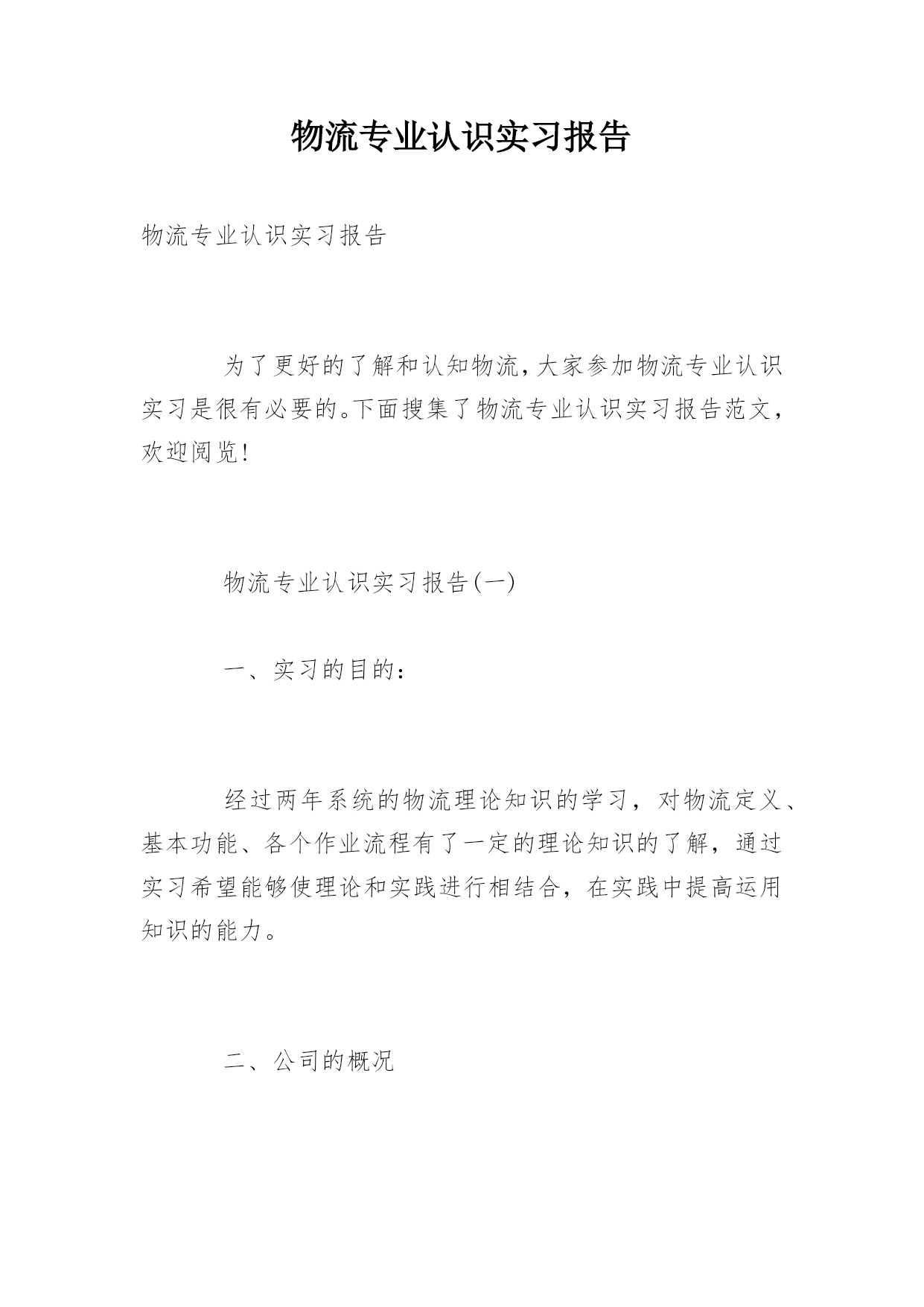 物流专业认识实习报告物流专业认识实习报告为了更好的了解和认知物流,大家参加物流专业认识实习是很有必要的。下面搜集了物流专业认识实习报告范文,欢迎阅览!物流专业认识实习报告(一)一、实习的目的:经过两年系统的物流理论知识的学习,对物流定义、基本功能、各个作业流程有了一定的理论知识的了解,通过实习希望能够使理论和实践进行相结合,在实践中提高运用知识的能力。二、公司的概况张家港天澜百货是一家初具规模的百货连锁企业,主要经营服装、饰品、鞋子等生活用品。主要针对15到35岁的中低消费客户群体。本着让更多人漂亮起来的