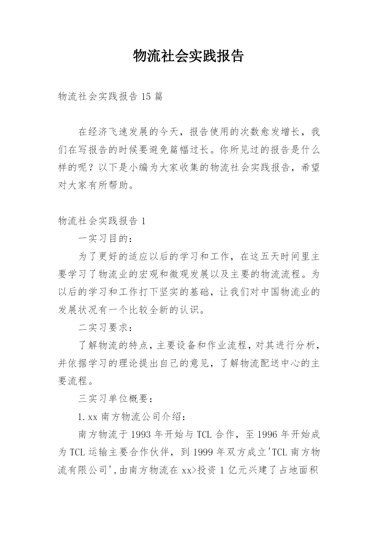物流社会实践报告物流社会实践报告15篇在经济飞速发展的今天,报告使用的次数愈发增长,我们在写报告的时候要避免篇幅过长。你所见过的报告是什么样的呢?以下是小编为大家收集的物流社会实践报告,希望对大家有所帮助。物流社会实践报告1一实习目的:为了更好的适应以后的学习和工作,在这五天时间里主要学习了物流业的宏观和微观发展以及主要的物流流程。为以后的学习和工作打下坚实的基础,让我们对中国物流业的发展状况有一个比较全新的认识。二实习要求:了解物流的特点,主要设备和作业流程,对其进行分析,并依据学习的理论提出自己的意见