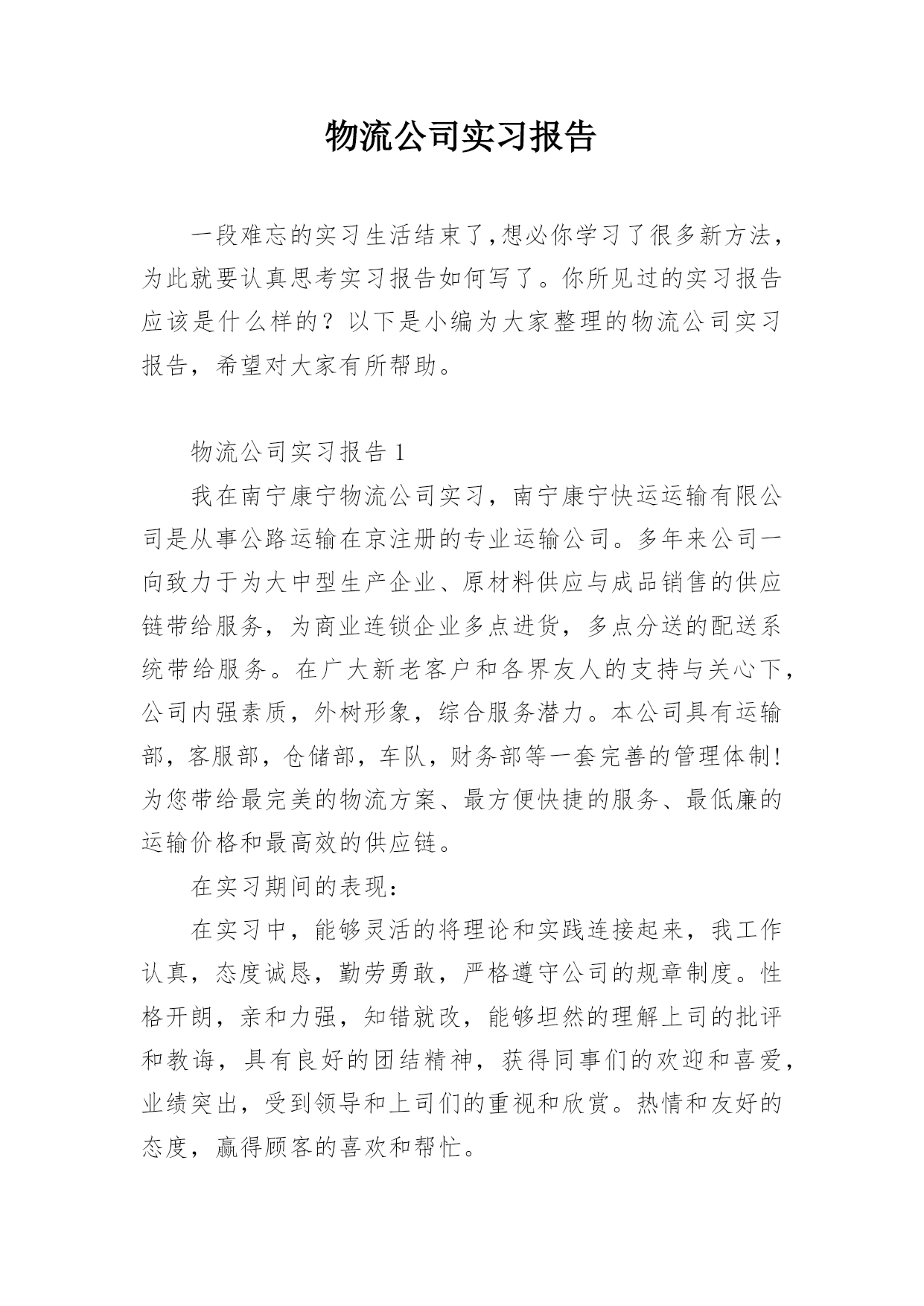物流公司实习报告一段难忘的实习生活结束了,想必你学习了很多新方法,为此就要认真思考实习报告如何写了。你所见过的实习报告应该是什么样的?以下是小编为大家整理的物流公司实习报告,希望对大家有所帮助。物流公司实习报告1我在南宁康宁物流公司实习,南宁康宁快运运输有限公司是从事公路运输在京注册的专业运输公司。多年来公司一向致力于为大中型生产企业、原材料供应与成品销售的供应链带给服务,为商业连锁企业多点进货,多点分送的配送系统带给服务。在广大新老客户和各界友人的支持与关心下,公司内强素质,外树形象,综合服务潜力。本公