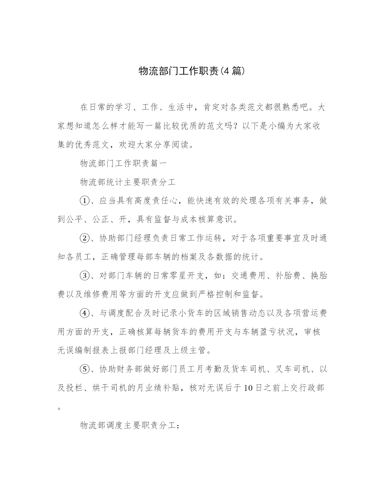 物流部门工作职责(4篇).docx